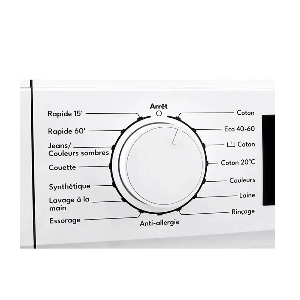 Affichage du temps restant : OuiAutre(s) : Sécurité porteAutre(s) équipement(s) : Filtre de pompe en façade, Pieds réglables, Joint filtre entrée d’eau + arrivée d’eauCapacité de lavage (kg) : 9Capacité nominale programme Eco 40-60 (kg) : 9Capacité variable automatique : OuiClasse d’efficacité d’essorage : CClasse d’efficacité de lavage : N/CClasse d’efficacité énergétique : DClasse d’émission de bruit (en essorage) : CClasse d’émission de bruit acoustique dans l’air : CConso. d’eau pondérée par cycle (litres) : 50Conso. d’énergie cycle lavage »Eco 40-60 » (kWh) : 0.761Conso. d’énergie pondérée pour 100 cycles (kWh) : 76Conso. eau cycle »Eco 40-60 » (L/cycle) : 50Conso. énergie /100 cycles (kWh) : 76Couleur : BlancDémarrage différé (W) : 4Départ / Pause : OuiDépart différé : OuiDépart ou fin différé(e) : Départ différéDimensions (cm) : 84.5 x 59.7 x 58.2Durée cycle »Eco 40-60 » (h:min) : 3:48Durée du programme »Eco 40-60 » capacité nominale (h:min) : 3:48Durée du programme »Eco 40-60 » moitié (h:min) : 2:54Durée du programme »Eco 40-60 » quart (h:min) : 2:54Eclairage du tambour : NonEcran : OuiEfficacité de rinçage (g/kg) : 5Emissions de bruit acoustique dans l’air (dB(A)) : 78Fin différée : NonFonction séchage : NonHauteur (cm) : 84.5IEE : 80Indice d’efficacité de lavage : 1.04Indice de réparabilité (Note /10) : 9.1Largeur (cm) : 59.7Lave-linge connecté : NonMatériau / type tambour : InoxMode arrêt (W) : 0.5Mode veille (W) : 1Nbre de programmes : 15Niveau sonore lavage (dB) : N/CNiveau sonore max.(dB) : 78Poids (kg) : 71Profondeur (cm) : 58.2Rinçage plus : OuiSécurité anti-balourd : OuiSécurité anti-débordement : OuiTaux d’humidité résiduelle pondéré (%) : 62.4Temp. max. (°C) à l’intérieur du textile traité (capacité nominale) : 50Temp. max. (°C) à l’intérieur du textile traité (moitié) : 36Temp. max. (°C) à l’intérieur du textile traité (quart) : 23Type : Lave-linge frontalType d’affichage : LEDType de bac à produit : 3 bacsType de chargement : FrontalType d