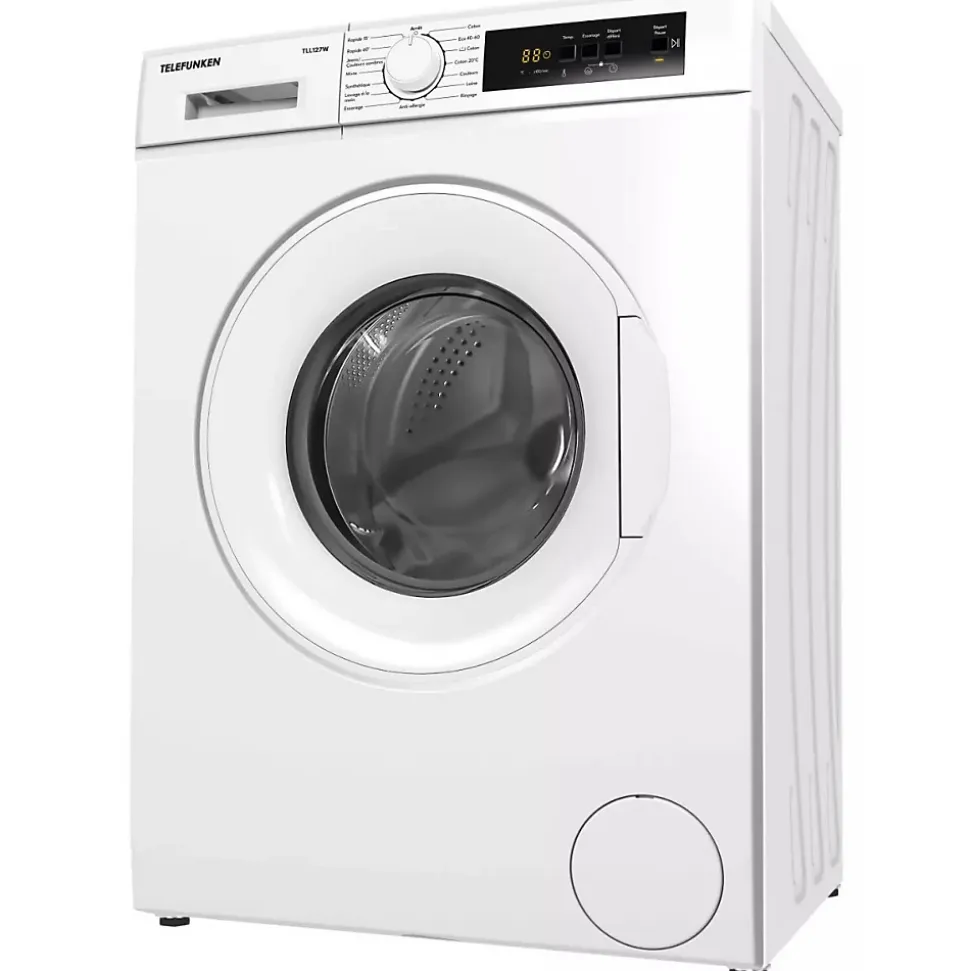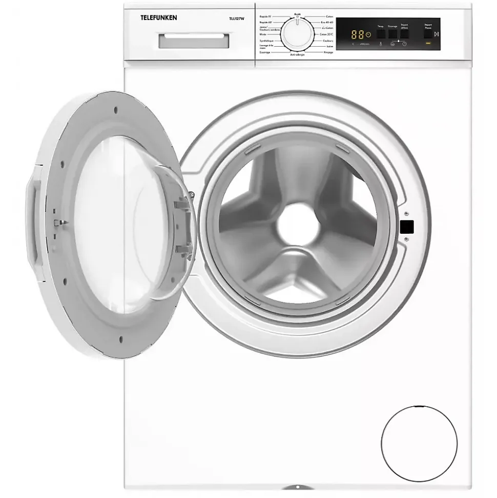 Le lave-linge frontal FUNKEN TLL127W offre une capacité de lavage de 7 kg avec 15 programmes et une vitesse d’essorage maximale de 1200 trs/min. Classé énergétique D, il est équipé d’un écran LED, commandes tactiles, et d’une technologie anti-vibration pour un fonctionnement silencieux. Il intègre la détection automatique du linge, le départ différé, et des sécurités contre le débordement et le balourd. Un produit fiable et performant, garanti constructeur étendue, idéal pour les familles.