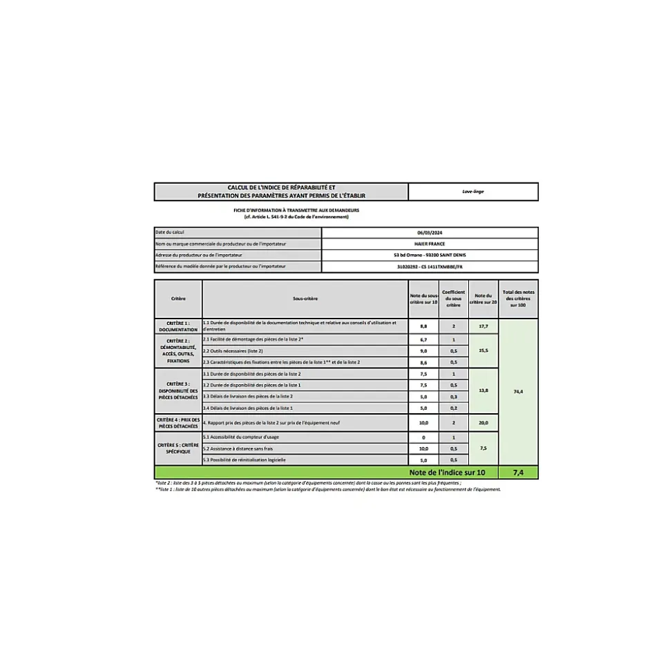 - Classe A en consommation énergétique pour une utilisation économe