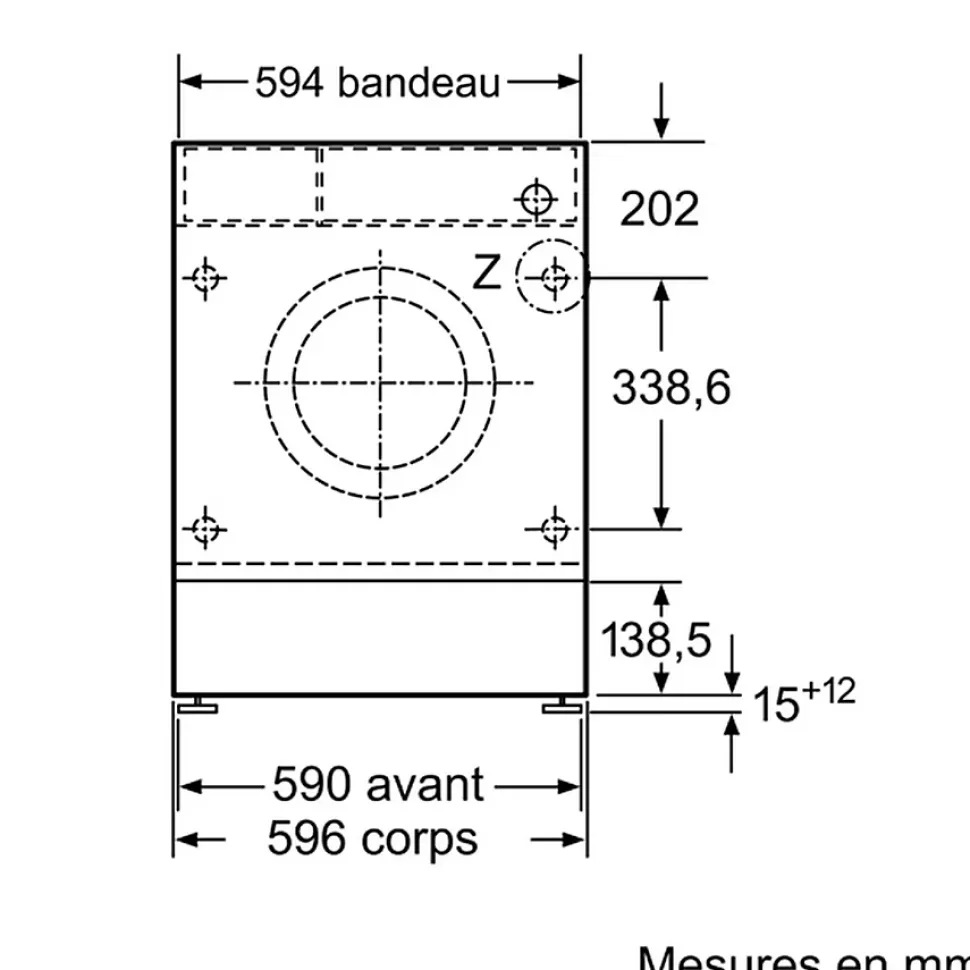 Lave-linge intégrable 8kg 1400 tours/min Siemens – Lave-linge iQ700 WI14W549FF de Siemens tout intégrable iSensoric avec moteur iQ drive et timeLight. SpeedPack L : accélérez vos programmes ou optez pour un lavage en 15 minutes seulement. Intégré dans un meuble avec retrait de plinthe, le statut du programme est visible au sol grâce au timeLight. Programme Outdoor/Imperméabiliser : spécialement conçu pour les textiles imperméables. Moteur induction iQdrive : efficace, silencieux, économe et garanti 10 ans. WaterPerfect plus : des capteurs ultra-précis analysent la quantité de linge chargé et en déduisent la quantité d’eau nécessaire, au litre près. – Type de produit : Lave-linge intégrable.Classe d’efficacité énergétique : C.Consommation énergétique pondérée en kWh pour 100 cycles de lavage Eco 40-60 : 62 kWh.Capacité maximale en kg : 8,0 kg.Consommation d’eau du programme Eco en litres par cycle : 45 l.Durée du programme Eco 40-60 en heures et en minutes à la capacité nominale : 3:26 h.Classe d’efficacité d’essorage du programme Eco 40-60 : B.Classe d’émissions de bruit acoustique dans l’air : A.Émissions de bruit acoustique dans l’air : 66 dB(A) re 1 pW.Intégrable / Pose-libre : Encastrable.Puissance de raccordement : 2300 W.Intensité : 10 A.Tension : 220-240 V.Fréquence : 50 Hz.Certificats de conformité : CE, VDE.Longueur du cordon électrique : 210 cm.Charnière de porte : À gauche.Roulettes : non.Indice de réparabilité : 8,8.Type de montage : Intégration total.Coloris : Blanc.Hauteur avec top : -2 mm.Dimensions du produit : 81,8 x 59,6 x 54,4 cm.Poids net : 75,8 kg.