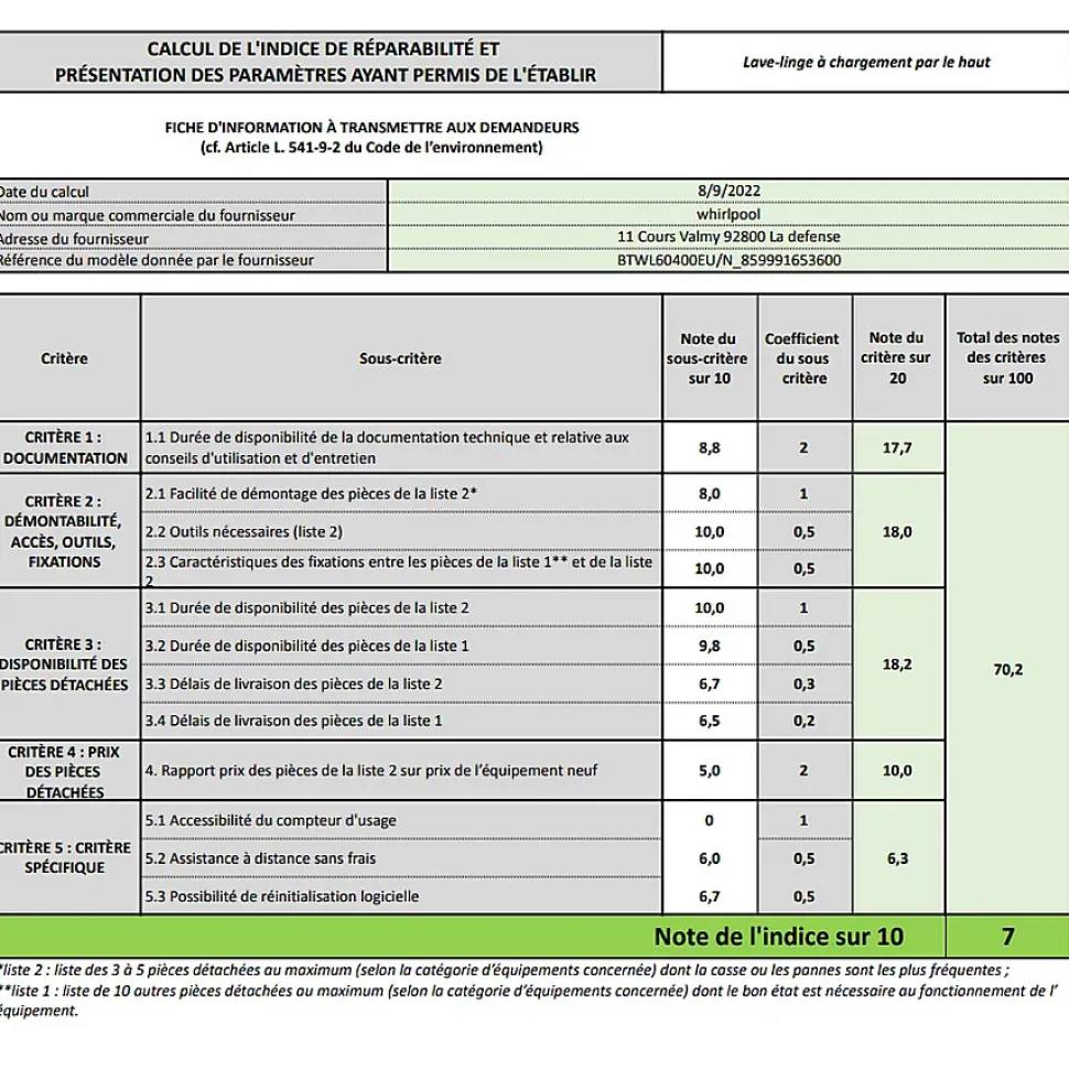 - Consommation maîtrisée : 43 litres d’eau par cycle