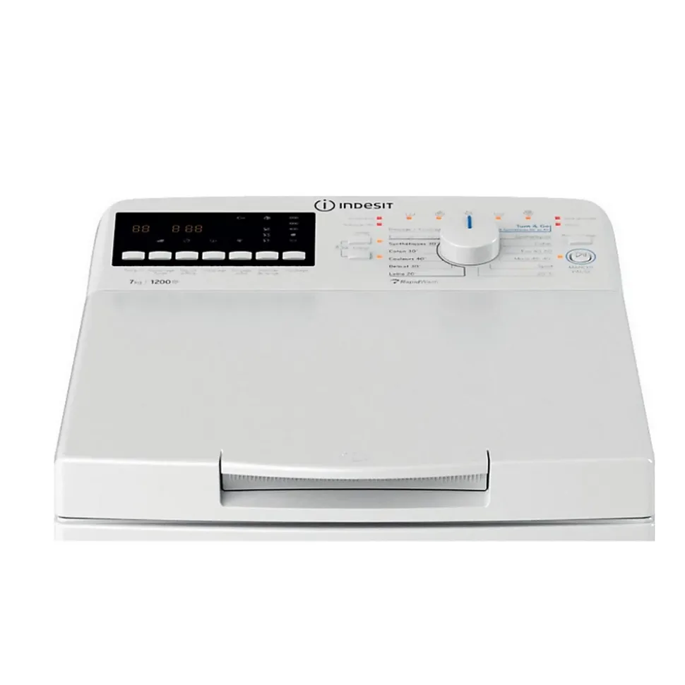 Lave-linge top INDESIT BTW 7251C FR – Compact et performant, ce modèle de 7 kg avec une vitesse d’essorage de 1200 tours/min s’intègre facilement dans les espaces réduits – Il propose 14 programmes dont Turn&Go pour un lavage mixte à 30° en 45 min, un cycle Rapide pour les textiles du quotidien et des programmes spécifiques pour la laine, les couleurs ou les vêtements de sport – Des options pratiques sont au rendez-vous comme le départ différé jusqu’à 24h, le prélavage, le rinçage extra ou encore le repassage facile pour limiter les plis – Il intègre les fonctions Turn&Go et RapidWash qui simplifient le quotidien en garantissant efficacité et rapidité de lavage – Son moteur à induction Inverter assure un fonctionnement silencieux et fiable dans le temps – Son tambour inox de 42 litres est associé à une ouverture douce et un accès direct qui facilitent le chargement – Côté sécurité, il embarque un détecteur et un anti-balourd pour un lavage stable et sécurisé – Avec sa cuve en polypropylène, ses 3 bacs à produits amovibles et son accès direct à la pompe à vidange, l’entretien est tout aussi simple que son utilisation – Son design sobre et pratique, avec poignées à dépression, afficheur Big Digit et roues intégrées, complète un format étroit de 40 cm de large – Idéal pour les petits espaces sans compromis sur la performance.Disponibilité Pièces Détachées : 10 ans