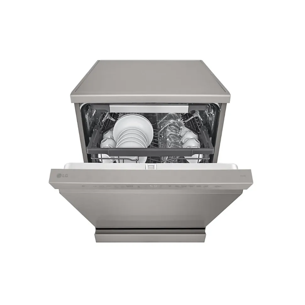 Lave-vaisselle 60 cm 14 couverts 41 db Lg – Le lave-vaisselle DF355FP de LG offre une capacité de 14 couverts et 9 programmes 7 options. Avec la technologie QuadWash™, les 4 bras de lavage multidirectionnels atteignent tous les recoins de la vaisselle pour un nettoyage parfait sous tous les angles. Ce lave-vaisselle est doté d’un moteur Inverter Direct Drive qui permet d’ajuster l’intensité de lavage pour s’adapter à tout type de vaisselle. Il offre ainsi des performances de lavage efficaces, un fonctionnement silencieux et des économies d’énergie. Son tiroir à couverts intelligent devient un 3ème panier. Vous pouvez y placer des longs couverts ou encore des tasses à expresso. Pour une facilité et flexibilité de rangement, son système de panier à chargement peut être ajusté en fonction de votre vaisselle. Grâce aux dents pliables, vous pouvez ajuster le panier afin d’organiser votre lave-vaisselle selon vos besoins. Vous pouvez également modifier la hauteur du panier supérieur jusqu’à 3 niveaux, d’une simple pression sur un bouton, pour y placer des articles plus ou moins volumineux. – Type de produit : Lave-vaisselle.Installation : Pose Libre.Capacité (Nombre de couverts) : 14.Type de moteur : Inverter Direct Drive.QuadWash™ : Oui.EasyRack Plus™ : Oui.Traitement Anti-Bactérien : Oui.Détecteur de salissure : Oui.Type de séchage : Condensation.Connexion : Wifi.Smart Diagnosis : Oui.Classe d’efficacité énergétique (A à G) : C.Niveau sonore : 41 dB.Indice de réparabilité (1 à 10) : 9.2.Auto : Oui.Intensif : Oui.Délicat : Oui.Éco : Oui.Turbo : Oui.Programme téléchargé : Oui.Autonettoyage : Oui.Rinçage : Oui.Express : Oui.Multi-jet : Oui.Demi-charge : Oui.Économies d’énergie : Oui.Température Élevée : Oui.Séchage Intensif : Oui.Départ différé (jusqu’à 12h) : Oui.Verrouillage : Oui.Adoucisseur d’eau : Oui.Nombre de