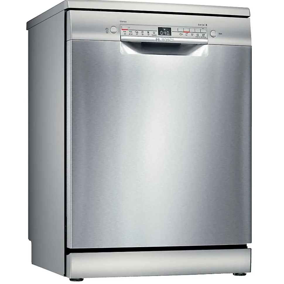 Lave-vaisselle 60cm 12 couverts 46db Bosch – Lave-vaisselle connecté Série 2 Bosch SMS2HTI79E avec réduction du bruit à tout moment via l’application Home Connect. Home Connect : appareils électroménagers dotés d’une connectivité intelligente pour une vie quotidienne facilitée. Option Séchage Extra : une phase de séchage plus longue pour un résultat optimal sur la vaisselle difficile à sécher comme le plastique. Programme Silence : la façon la plus silencieuse d’utiliser votre lave-vaisselle. Le panier supérieur est réglable en hauteur pour loger des assiettes plus grandes dans le panier inférieur. Technologie ActiveWater : une consommation d?eau adaptée à la quantité de vaisselle chargée. – Type de produit : Lave-vaisselle 60 cm.Nombre de couverts standard : 12.Classe d’efficacité énergétique : E.Conso. d’eau par cycle en programme éco (L) : 9.5.Conso. d’énergie pour 100 cycles (kWh) : 92.Conso. annuelle eau (L) : 2660.Durée du programme éco (h:min) : 3:45.Emissions acoustiques dans l’air dB(A) re 1 pW : 46.Classe d’émission de bruit acoustique dans l’air : C.Lave-vaisselle connecté : Oui.Type de connectivité : Home Connect.Optimisation du lavage : Aqua Sensor.Capacité variable automatique : Oui.Type de séchage : Echangeur thermique.Programmateur électronique : Oui.Couleur : Inox.Nbre programmes : 6.Programme Intensif : Oui.Programme Eco : Oui.Programme Silence : Oui.Programmes spéciaux : Auto 45-65°C, Programme 1h 65°C, Favourite (Pré-rinçage).Départ différé : Oui.Type de départ différé : 1-24h.Demi-charge : Oui.Touches spéciales : Home Connect, Séchage extra, Machine Care, Silence à la demande (via Home Connect).Ecran : Oui.Type d’affichage : Display.Affichage du temps restant : Oui.Type de moteur : EcoSilence Drive.Hauteur de panier réglable : Oui.Type de panier inférieur : 2 rangées de picots