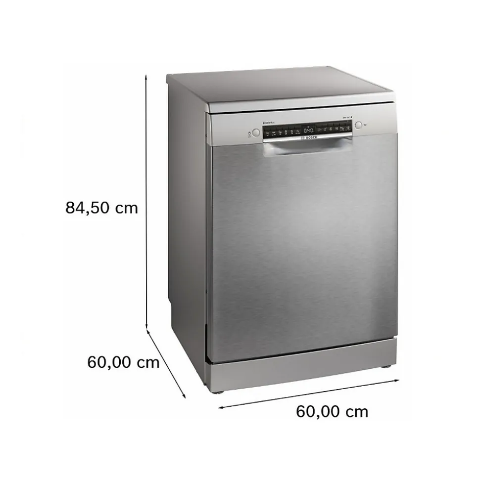 Lave-vaisselle 60cm 14 couverts 42db Bosch – Lave-vaisselle SMS4EMI06E de BoschMeilleures performances de séchage avec le lave-vaisselle connecté et son contrôle intelligent.Efficient Dry : Performance de séchage améliorée grâce à l’ouverture de porte automatique en fin de cycle.Tiroir et paniers VarioFlex : Flexibilité accrue pour le rangement de votre vaisselle à tous les niveaux.Tiroir à couverts : Libérez de la place pour les couverts et les petits ustensiles de cuisine.Silence Plus : un lave-vaisselle exceptionnellement silencieux à 42 dB.Home Connect : Appareils électroménagers dotés d’une connectivité intelligente pour une vie quotidienne facilitée. – Type de produit : Lave-vaisselle.Type d’installation : Encastrable.Gamme : Serie 4.ype de construction du produit : Autonome.Installation : Autonome avec dessus amovible.Couleur/matériau du panneau de commande : couleur acier inoxydable, peint.Dessus amovible : Oui.Charnières coulissantes : Non.Socle réglable : Non.Émissions de bruit aérien : 42 dB(A) re 1 pW.Classe d’émission de bruit aérien : B.Durée du programme : 3h35.Nombre maximum de places : 14.Liste des programmes : Auto 45-65°C, Programme personnalisé, Eco, Intensif, Rapide, Silencieux 50°.Autres options : EfficientDry, Machine Care, Demi-charge, Démarrage à distance, SpeedPerfect Plus.Système de séchage : Échangeur de chaleur + ouverture automatique de la porte.Troisième panier : Troisième panier VarioDrawer.Dispositif de réglage du panier supérieur : Oui.Profondeur avec porte ouverte à 90 degrés : 1 155 mm.Hauteur du plateau amovible : 30 mm.InfoLight : Non disponible.Voyant d’état : Non.EmotionLight: Non.Emotionlight pro : Non.Protection précise du verre : Non.EcoSilence Drive : Oui.AquaSensor : Oui.Système de gestion de l’eau : Non.Reconnaissance des détergents :