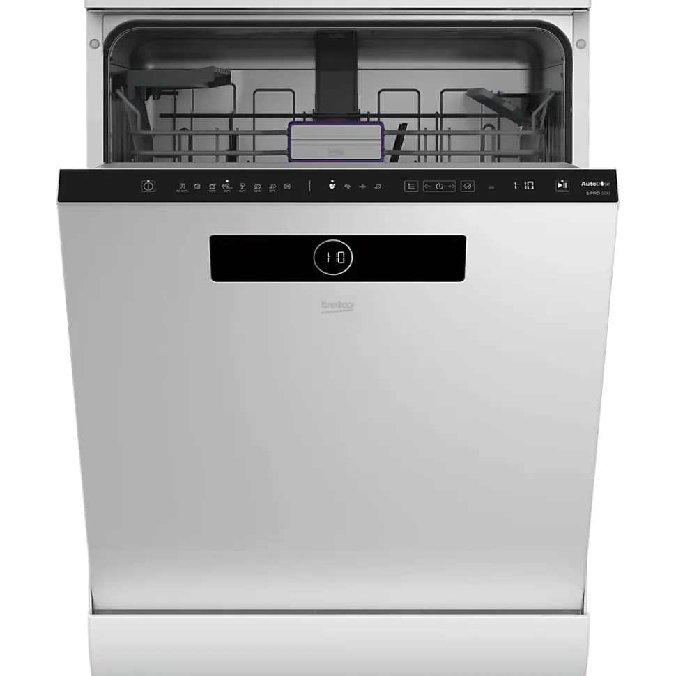 Lave-vaisselle 60cm 14 couverts 44db Beko – Lave-vaisselle Beko BDEN38441WA doté de 8 programmes dont Quick&Shine 58′ et Auto 45-65°C. AutoDose : en fonction du programme choisi et du niveau de salissure détecté, le lave-vaisselle est en mesure de délivrer la quantité exacte de détergent nécessaire afin d’éviter toute surconsommation tout en nettoyant la vaisselle efficacement. Options Hygiène Intense, Séchage+, Rapide et AquaIntense : avec AquaIntense et son bras de lavage supplémentaire muni d’une hélice à 360°, obtenez des résultats de lavage 5 fois supérieurs à la normale, sans consommer plus d’eau. Panier supérieur réglable en hauteur sur 3 niveaux même chargé. Avec la technologie Selfdry, votre lave-vaisselle s’ouvre automatiquement en fin de cycle de 10 cm une fois que la température de la cuve est inférieure à 43 degrés. – Type de produit : Lave-vaisselle.Nombre de couverts : 14.Niveau sonore : 44 dB.Conso eau : 9,5 L / cycle de référence.Ouv. porte auto Fin de cycle : oui.Conso élec. : 75 kWh / 100 cycles.Tiroir à couverts : non.Matériau de la cuve : inox.Voyant de rinçage : oui.Voyant de sel : oui.Durée Prog. ECO : 224 min.Départ différé : jusqu’à 24 heures.Afficheur Temps Restant : oui.Connecté : non.Label énergie : C.Catégorie sonore : C.Le + produit : Distributeur de produit lessiviel AutoDose.3 bras de lavage.Témoin de fonctionnement LedSpot.Produit composé de plastique recyclé.Dimensions (LxHxP) : 59,8 x 85 x 60 cm.Top amovible : oui.Poids net : 47,2 Kg.Couleur du bandeau : blanc.Indice de réparabilité : 7,7 / 10.