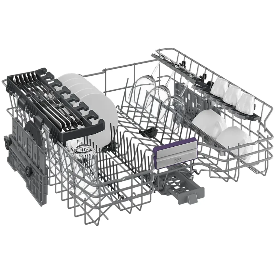 Lave-vaisselle BEKO BDEN38441WA avec 8 programmes dont Quick&Shine 58′ et Auto 45-65°C. AutoDose pour dosage optimal du d