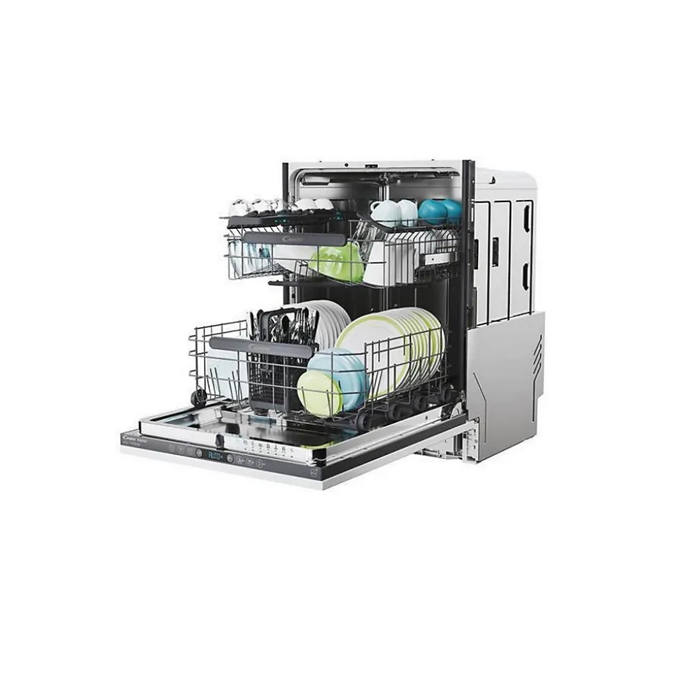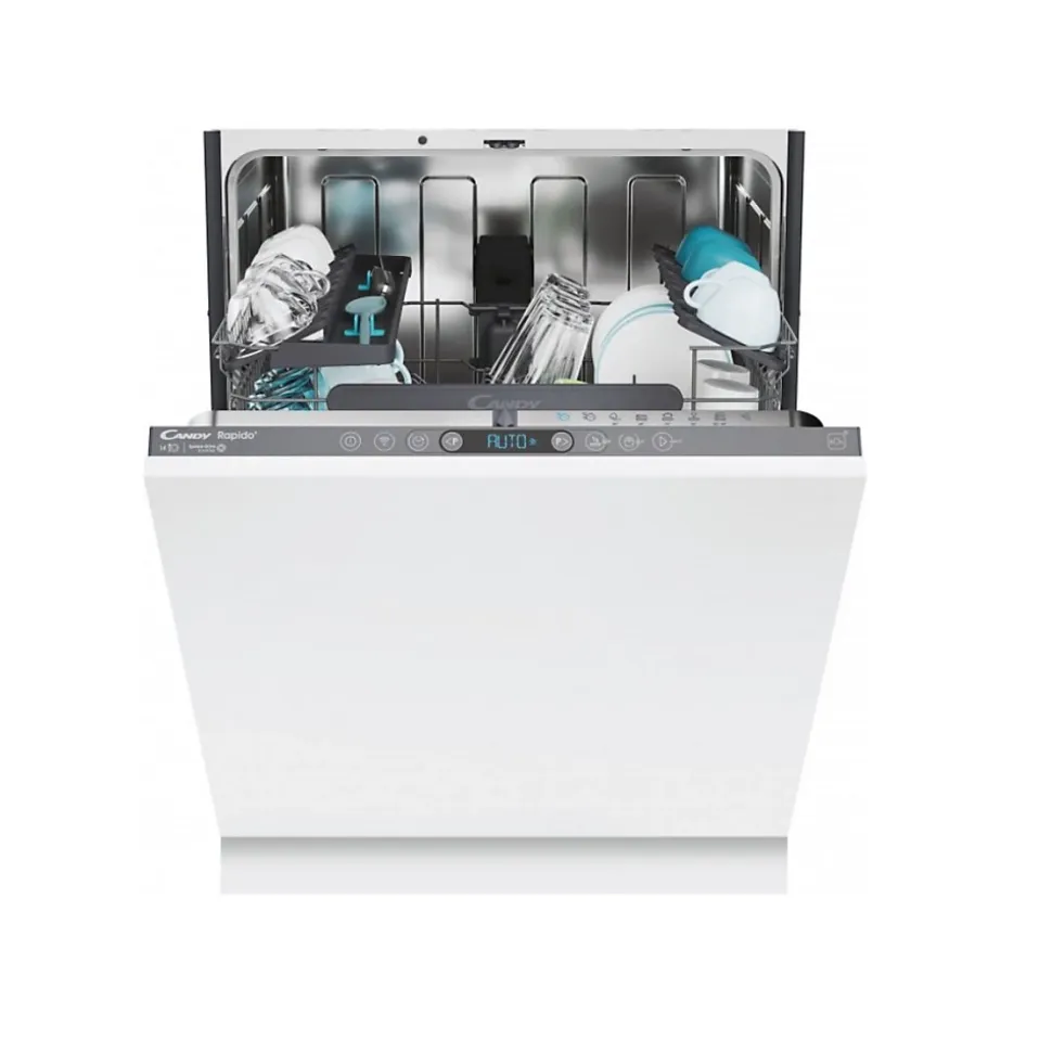 Lave-vaisselle 60cm 14 couverts 44db tout intégrable Candy – Lave-vaisselle Tout intégrable Candy CI4C4F0PA. Les lave-vaisselle Candy Rapidò sont dotés de la cuve la plus spacieuse du marché. Grâce à cela, vous pourrez même laver les articles les plus volumineux tels que les lèchefrites, les planches à découper ou encore les louches. Grâce à l’application hOn, accédez à des conseils personnalisés, des programmes spéciaux et contrôlez à distance votre lave-vaisselle pour gagner du temps et rendre votre expérience simple et facile. De plus, grâce aux fonctions Snap&Wash & Dishplacer , l’application détermine le cycle de lavage le plus adapté à votre vaisselle en prenant simplement une photo de votre panier chargé ou encore vous pouvez obtenir des conseils pour optimiser les chargements. – Type de produit : Lave-vaisselle Tout intégrable.Nombre de couverts : 14.Couleur du bandeau : Anthracite.Classe énergétique – (2017/1369) : C.Niveau sonore dB(A) : 44.Classe d’efficacité sonore : B.Consommation d’eau/cycle (L) : 9,5.Conso. d’eau/100 cycles (L) : 950.Conso. d’énergie/cycle (kWh) : 0,74.Conso. d’énergie/100 cycles (kWh) : 74.Durée du programme Eco 45°C (h) : 03:58:00.Programmateur 4DIGIT.Départ différé : 1-23 h.Indicateur de sel : Oui.Indicateur de liquide de rinçage : Oui.Option express : Oui.Indicateur de fin de cycle : Oui, avec sonnerie.Maxi-Cuve : Oui.Connectivité : Wi-Fi hOn + Bluetooth.Sensor : Oui.Chargement : Oui.Nombre de programmes : 8.Universel 60°C : Oui.Progr. Auto : Oui.Intensif 75°C : Oui.Eco 45°C : Oui.Verre 45°C : Oui.Prélavage : Oui.Nombre de températures : 7.Panier à couverts : Oui.Tuyau d’alimentation (cm) : 150.Tuyau d’évacuation (cm) : 199.Prise Schuko.Ouverture auto porte fin de cycle : Oui.Matériau de la cuve : Acier inoxydable.Poids maximum de la porte d’habillage