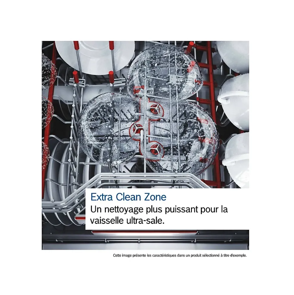 Lave-vaisselle tout-intégrable Bosch SBD6ECX12E Série 6 60 cm Hauteur XXLProfitez d’une capacité optimisée avec ses 14 couverts et sa hauteur XXL pour un chargement plus confortableSes 8 programmes, dont l’Intensif 70 °C pour un lavage puissant et le Silence 50 °C pour une discrétion maximale, s’adaptent à tous vos besoinsL’option SpeedPerfect+ accélère le cycle jusqu’à trois fois pour un gain de temps considérableAvec Home Connect, contrôlez votre appareil à distance et accédez à des fonctions exclusives comme HygienePlus ou Silence à la demandeLe tiroir à couverts libère de l’espace dans le panier inférieur et facilite le rangement des petits ustensilesLes paniers MaxFlex avec picots rabattables et panier supérieur ajustable offrent un chargement flexible et sécuriséL’Extra Clean Zone assure un nettoyage en profondeur des plats les plus incrustésSon moteur EcoSilence Drive garantit une performance silencieuse à seulement 42 dBSéchage optimal avec ouverture automatique de la porte EfficientDryOpenAssist : ouverture de porte push-pullAquaStop et sécurité enfants pour une protection maximaleAffichage du temps restant au sol avec TimeLightDépart différé jusqu’à 24 h pour une gestion flexibleCet appareil est intégrable : Il est livré sans habillage ni porte décorative, afin de vous permettre de l’assortir au mobilier et à la couleur de votre cuisine.Disponibilité Pices Détachées : 11 ans