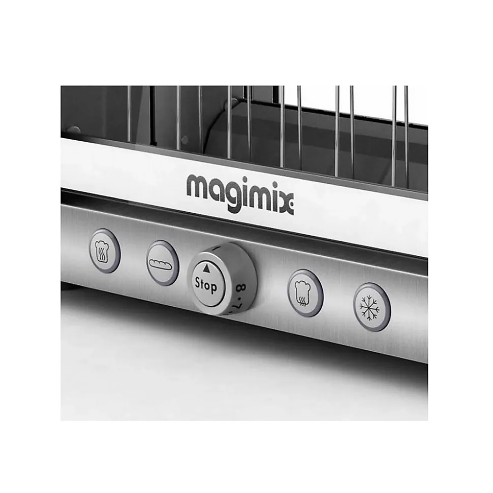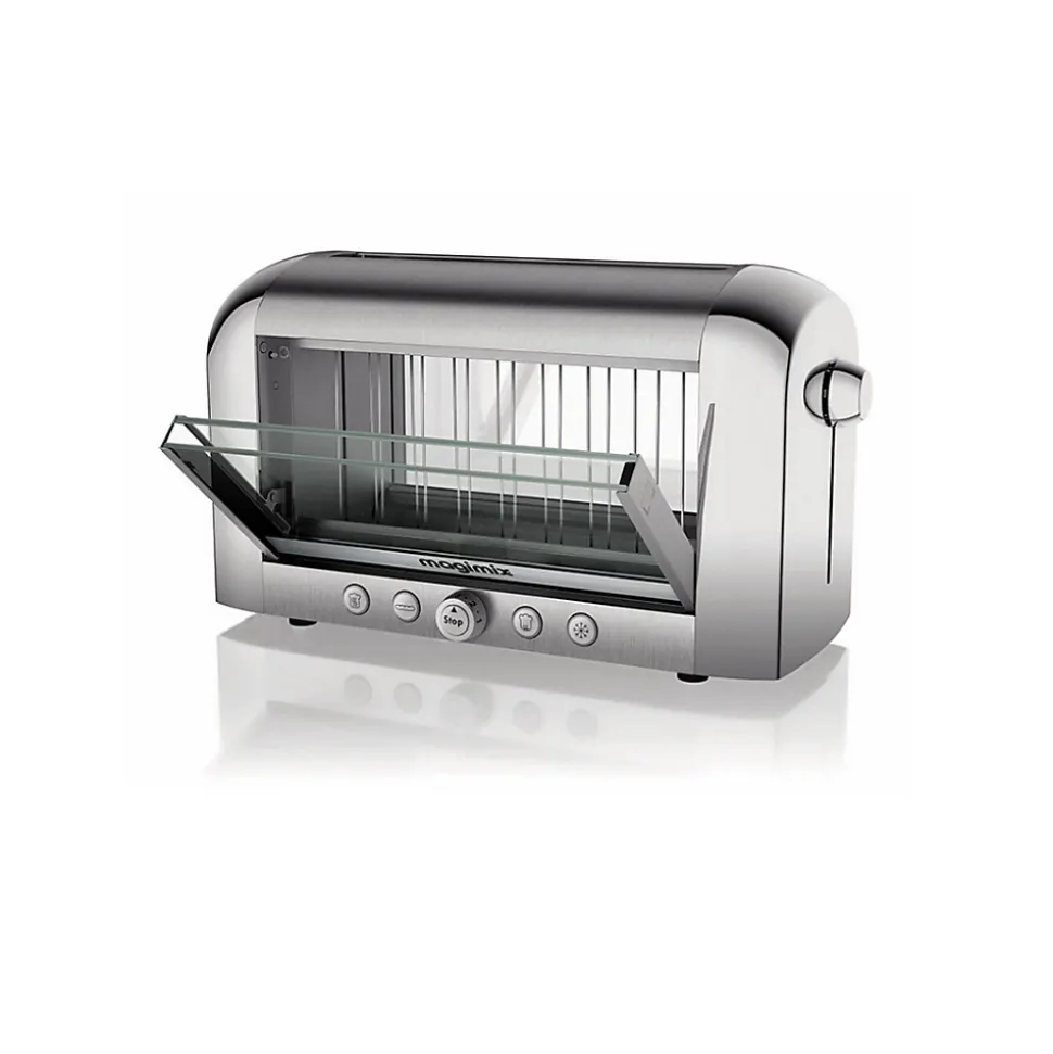 Magimix invente le 1er toaster à vision panoramiquepour des toasts exactement comme vous les aimez.Puissance 1450 watts, contrôle visuel du painpour des toasts parfaits – vision panoramique 4 tubes quartz – Remontée extra-haute, porte double paroi isolante.Fonctions réchauffage, décongélation et baguette (grille 1 seul côté)Collection : Grille-Pain – Toasters Matière : Acier inoxydable (inox) Couleur : Argent / Métallique Longueur : 40.00 cm Largeur : 18.00 cm Hauteur : 23.00 cm