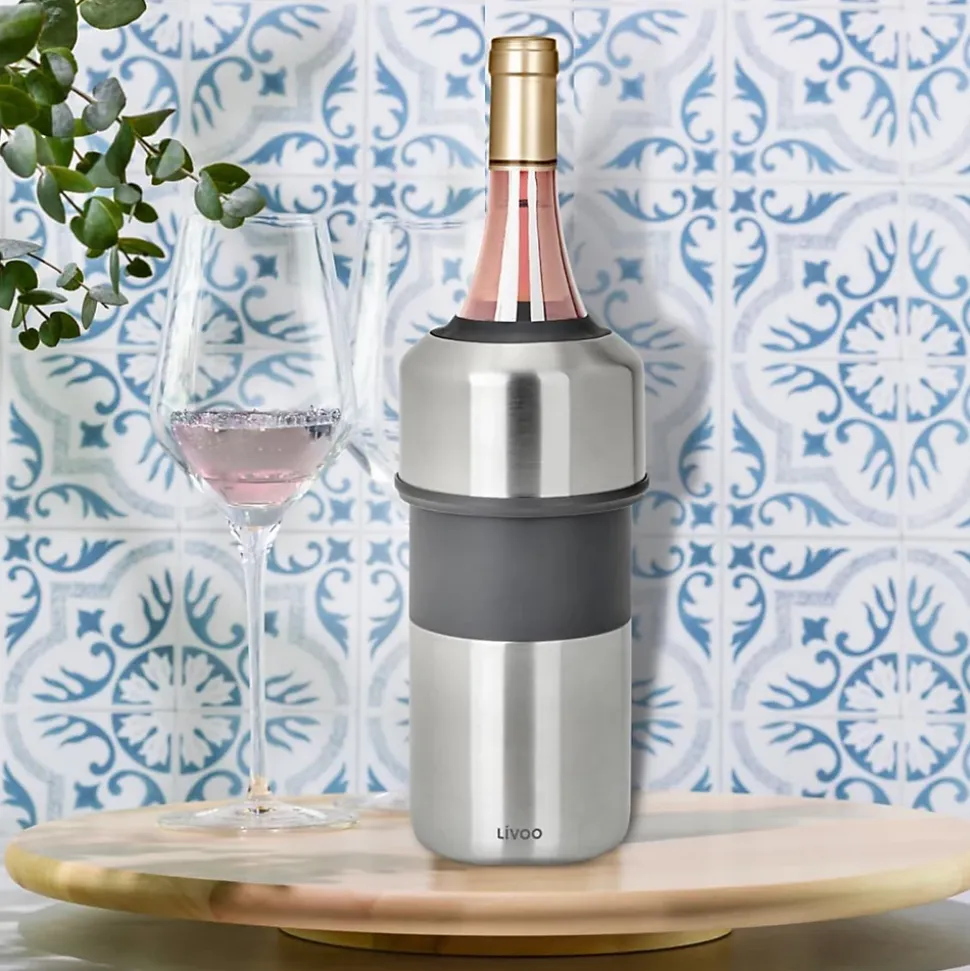 Double paroi et anneau isolant en silicone qui permet de conserver la fraîcheur d’une bouteille pendant une durée allant jusqu’à 6 heuresPeut être utilisé pour des bouteilles de vin et de champagne standard grâce au diamètre de 11,5 cm et à la hauteur ajustableRésistant et durable dans le temps grâce à son design épuré en acier inoxydable brosséDescription : – Pour des bouteilles de vin et de champagne standards- En acier inoxydable brossé- Anneau isolant en silicone- Dimensions : Ø 11,5 x 23,5 cm- Double paroi pour conserver la fraîcheur jusqu’à 6h- 1 dessous de bouteille en silicone inclus- Dimensions : 11,5 X 10,2 X 23,5 Cm- Matière Principale : Acier Inoxydable- Poids : 0,56 KG- Matière Secondaire : Silicone…