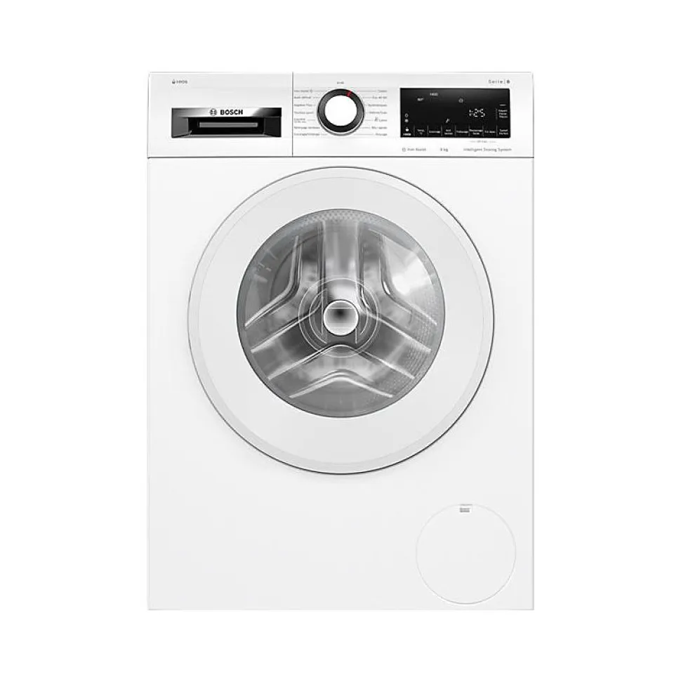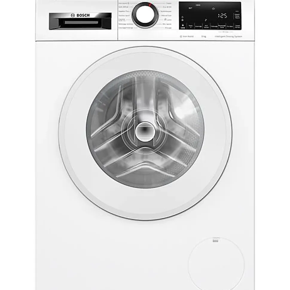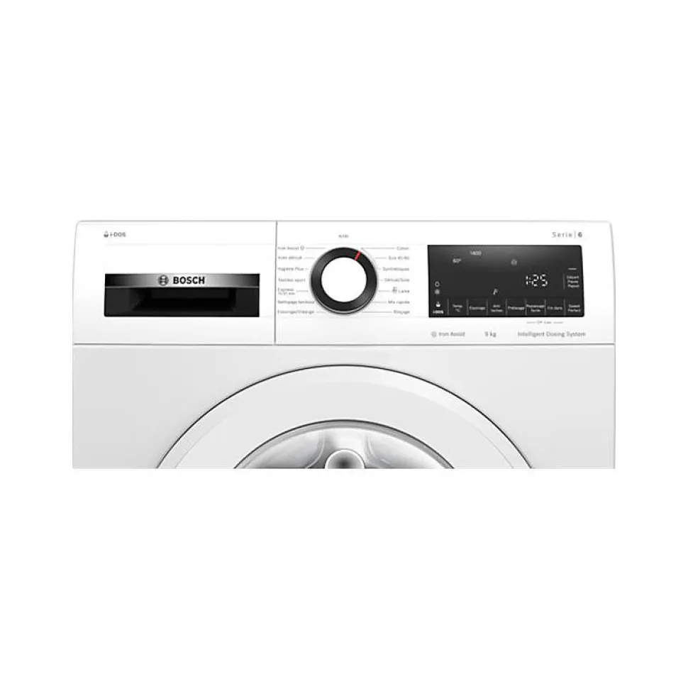 Lave-linge frontal Bosch Série 6 9 kg WGG244F1FR avec i-DOS, moteur à induction EcoSilence Drive, ActiveWater Plus, essorage 1400 trs/min et grand écran LED pour des cycles précis et rapides.