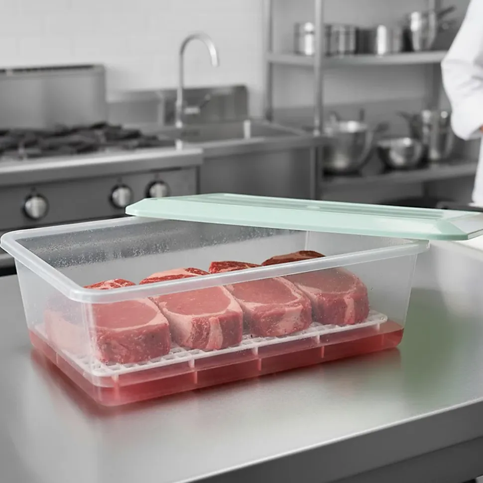 Lot 12 bacs de décongélation avec grille 4,2L (couvercles de couleurs assorties). Hôtellerie, restauration, cuisines. Sans BPA