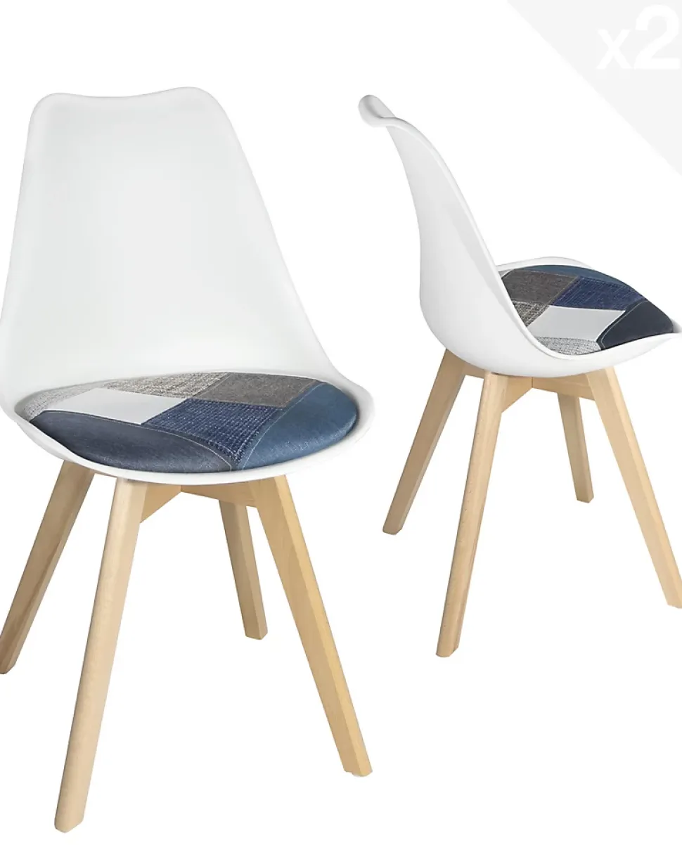 - Style patchwork scandinave : chaise de cuisine lao avec coussins en patch coloré, combinant originalité et design scandinave, idéale pour toutes les pièces.