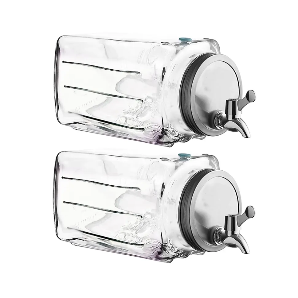 Lot de 2 Fontaine, pot à boisson en verre solide avec couvercle à vis. Résistant aux hautes températures, parfait pour tous les types de boissons froides et chaudes. Le distributeur de boissons de 3 litres est parfait pour garder les boissons froides dans le réfrigérateur. Doté d’un robinet facile à verser qui gardera les boissons fluides et d’une forme rectangulaire élégante, conçue spécifiquement pour maximiser l’espace sur les étagères de votre réfrigérateur. Le lot contient 2 bocaux distributeur en verre de 3 litres, 2 disque d’étanchéité, 2 bande à vis en acier inoxydable et 2 robinet verseur en acier inoxydable, difficile à rouiller, robuste et durable. Conception anti-obstruction intégrée, écoulement régulier de l’eau, vous aide rapidement à remplir le verre. Idéal pour les anniversaires, les dîners, les vacances, les mariages, les fêtes, les événements en plein air, les fêtes à la piscine, les pique-niques, etc.Dimensions : Longueur 32.5 x Profondeur 13.5 x Hauteur 32.5 cmMatière : Verre/acier inoxydableCouleur : TransparentPoids : 2 kgCapacité : 6 L