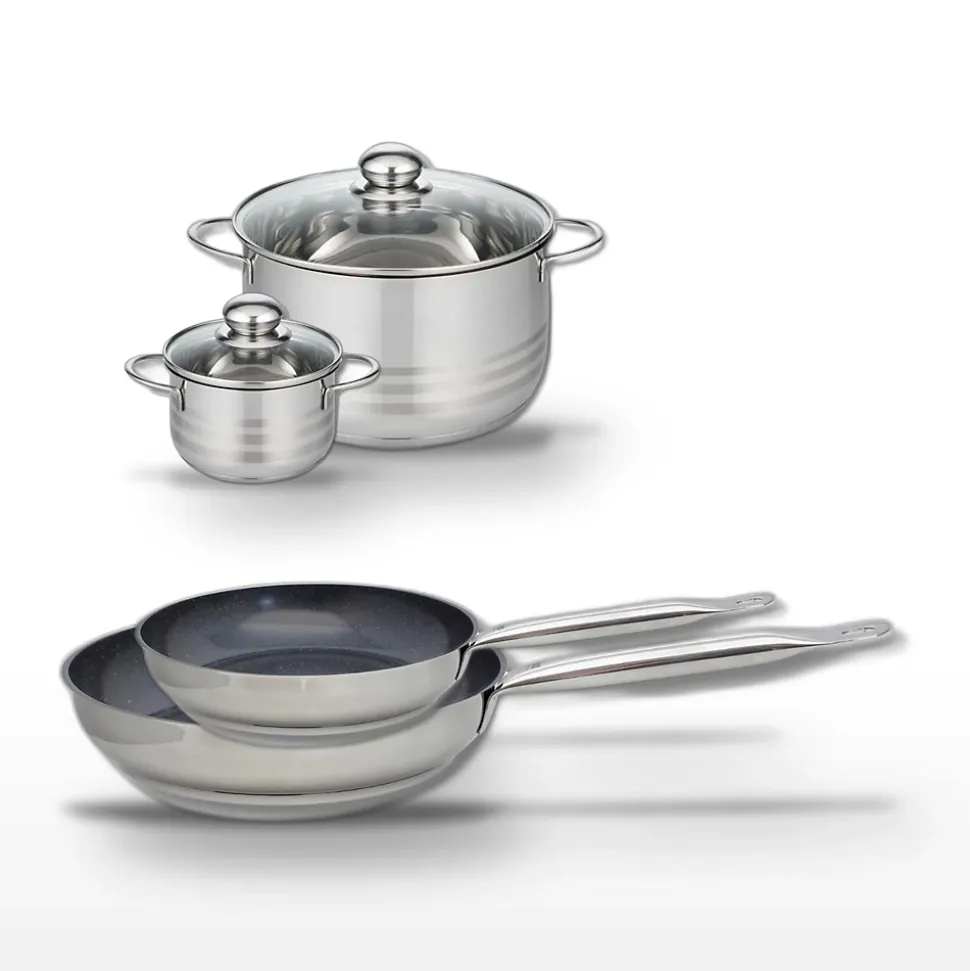 - DIMENSIONS : Les poêles mesurent 24 cm et 28 cm de diamètre, tandis que les faitouts mesurent 12 cm et 20 cm, offrant une polyvalence de cuisson.