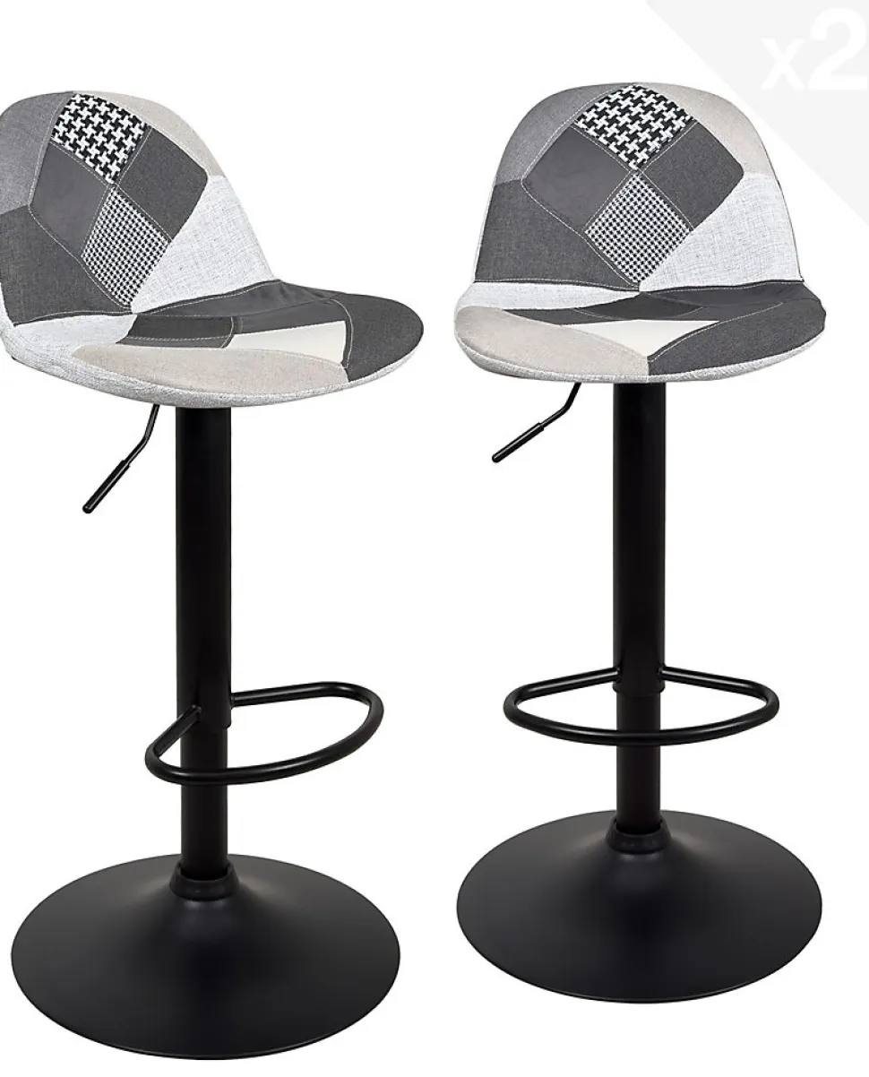 Lot 2 Tabourets De Bar Design Siège Rembourré Patchwork Tissu Pivotant Hauteur Réglable SIG (gris)