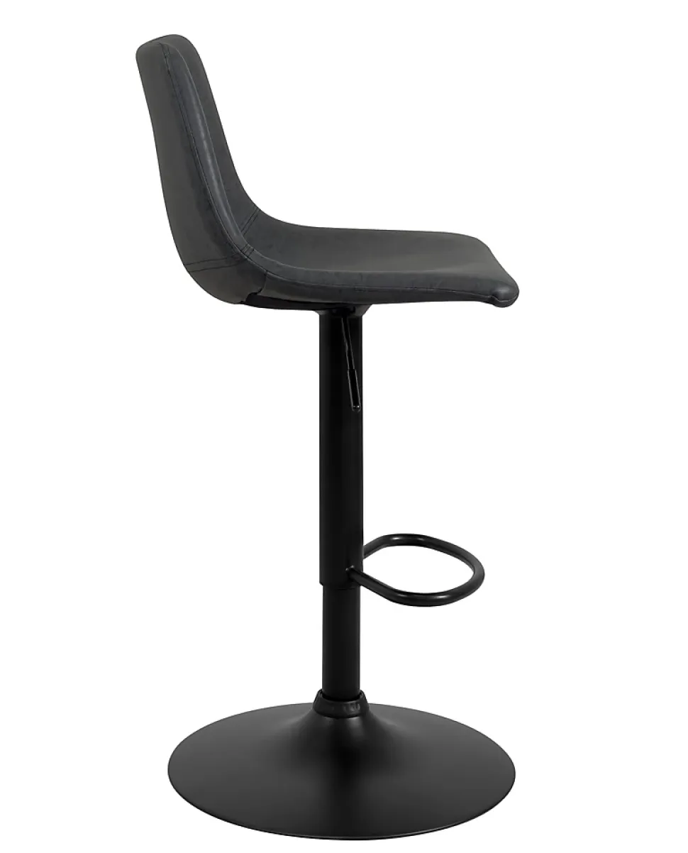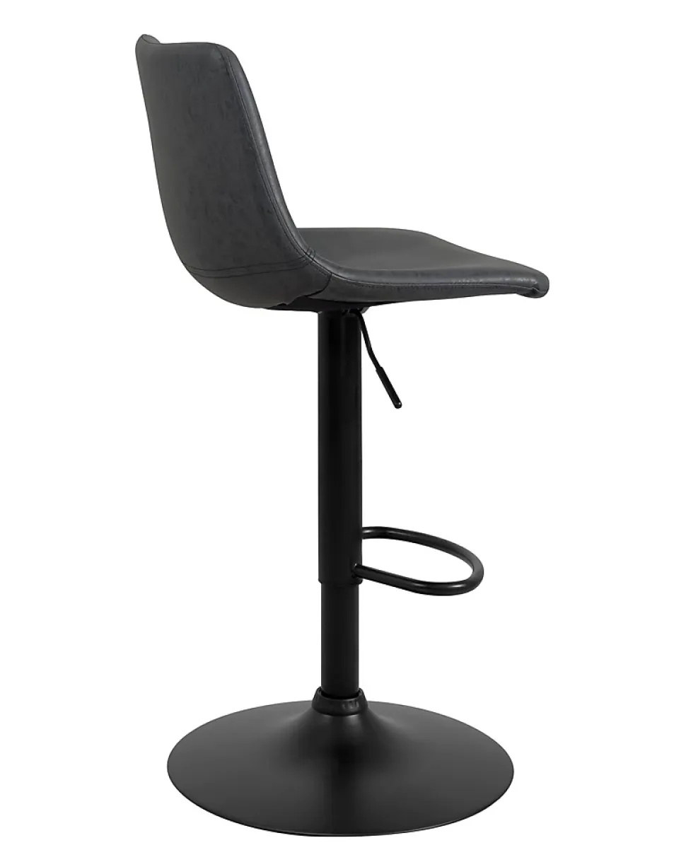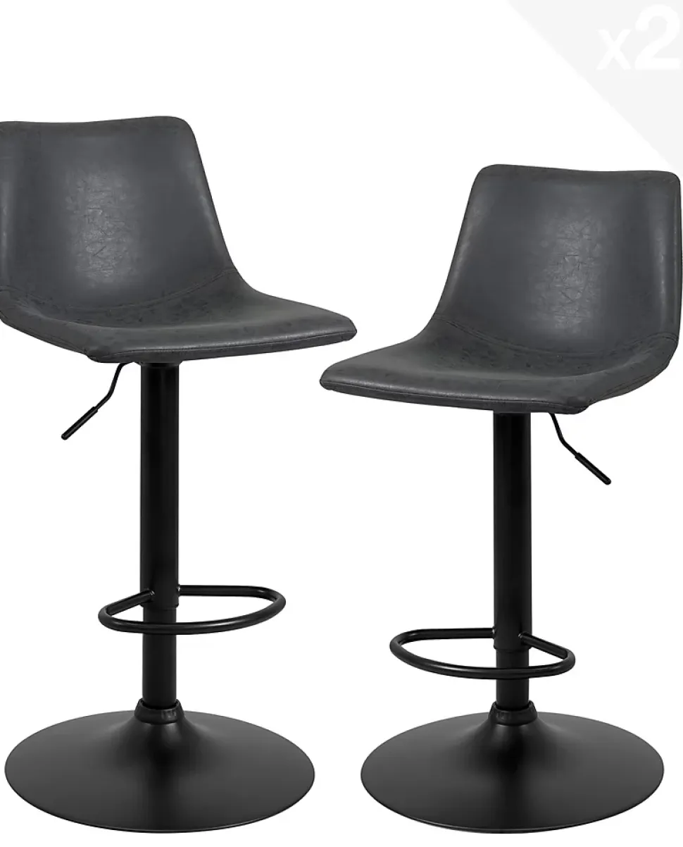 Tabouret de bar style industriel helio. Vendu par lot de 2, ce tabouret reprend les codes du style industriel avec ses coloris foncés, son piètement en métal noir et son siège habillé de simili gris ardoise effet cuir vieillit. Il est très confortable avec son large siège incurvé à dossier entièrement rembourré de mousse et habillé d’un beau similicuir doux et chaleureux. L’ensemble est monté sur un piètement en métal équipé d’une pompe à gaz à levier qui permet de régler la hauteur d’assise de 61 à 82 cm tout en procurant un amorti supplémentaire. L’ensemble est équipé d’un repose pieds et pivote à 360°. Le simili offre un rendu vintage imitation cuir antique avec une belle finition aux coutures apparentes. Très stable le tout repose sur une large base de 45 cm de diamètre équipée d’une bande silicone anti dérapant.matières:- assise polypropylène recouverte de similicuir- rembourrage mousse- piètement en métal peint équipé d’une pompe à gaz à levier et d’un repose pieds fiche technique :- hauteur totale : +/- 89->110 cm- hauteur d’assise : +/- 61->82 cm- assise / dossier : 43 (l) x 36 (p) x 32 (h)cm- diamètre de la base :45 cm- dimensions hors tout : 46 x 56x 89—>110 cm- colisage : livré en 1 colis de 59 x 46 x 47 cm- nombre de pièces par carton : 2- poids brut : 16.1 kg- poids net d’une chaise : 7.2 kgmontage :- facile / une personne. A assembler suivant instructions jointes au colisentretien :- chiffon doux et sec pour les chromes, pas d’abrasif- chiffon doux légèrement humide pour le simili, pas de détergents