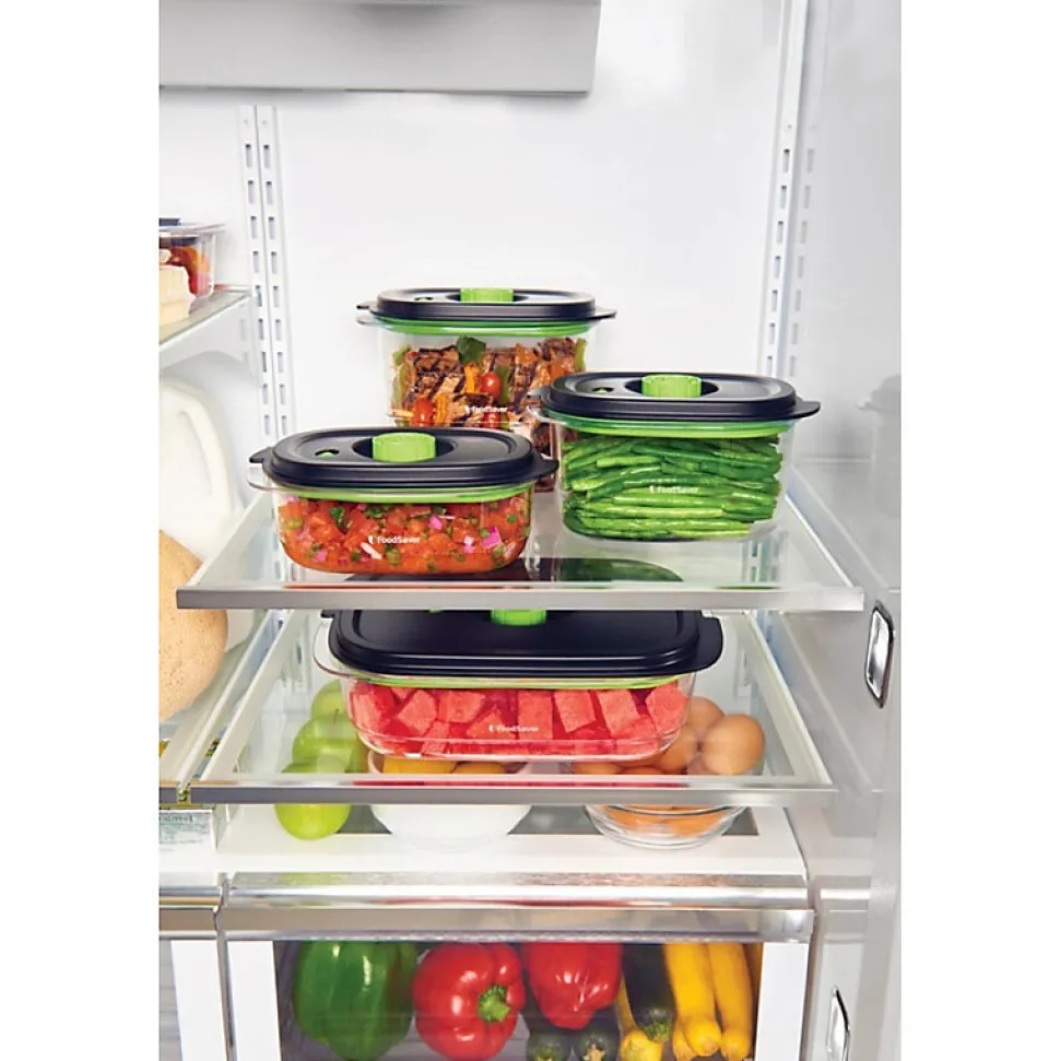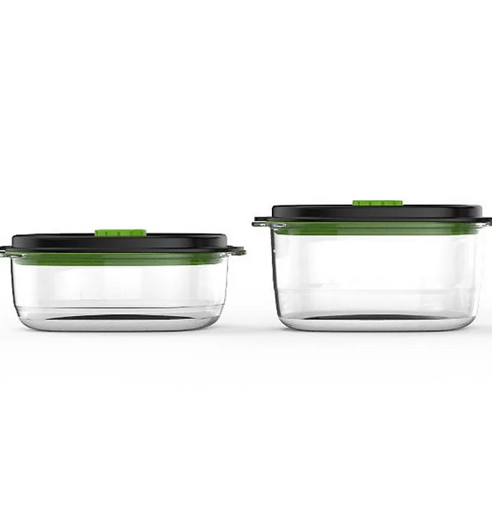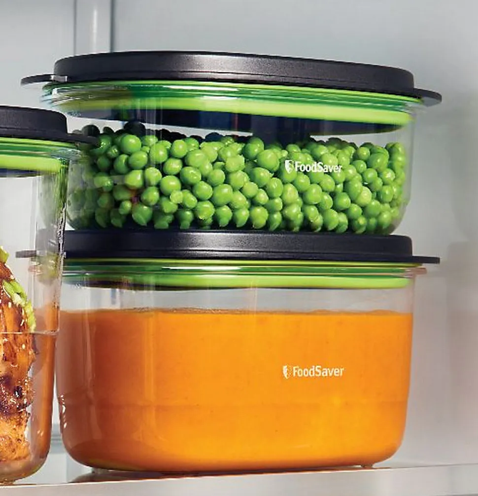Lot de 2 boîtes pour appareil sous vide Foodsaver – Lot de 2 boîtes Fraîcheur & Marinade FFC025X pour appareil sous vide Foodsaver. Grâce à leur 2 modes, ces boîtes conservent toute la fraîcheur et les saveurs de vos aliments et plats préparés plus longtemps. Le mode Sous-vide permet de conserver la fraîcheur de vos aliments au congélateur, au réfrigérateur et dans vos placards. Le mode Marinade vous permet de faire mariner de la viande, du poisson et des légumes en quelques minutes au lieu de plusieurs heures. Nos boîtes fraîcheur ergonomiques vous aident à garder votre cuisine organisée. De plus, leur conception en Tritan, un matériau extrêmement résistant, empêchera les fuites et les fissures. Ces boîtes possèdent un système de mise sous-vide durable et un couvercle flexible à ouverture facile. Indicateur visuel de mise sous-vide. Empilables et transparentes pour une meilleure visibilité du contenu. Compatibles avec tous les appareils de la marque Foodsaver. – Type de produit : Boîtes pour appareil sous vide.Matière : Tritan.Sans BPA.Capacités : 0.7 L + 1.2 L.Coloris : Vert/noir.Compatibles : Micro-ondes, lave-vaisselle, réfrigérateur et congélateur.