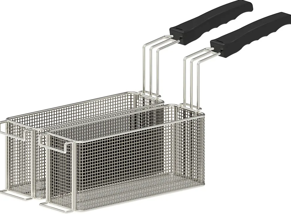 Lot de 2 paniers 4,5L pour friteuse 10 litres – Capacité : 2 x 4,5 L- Dimensions : 2 x L 105 x P 317 x H 140 mm- Poids : 2,5 Kg