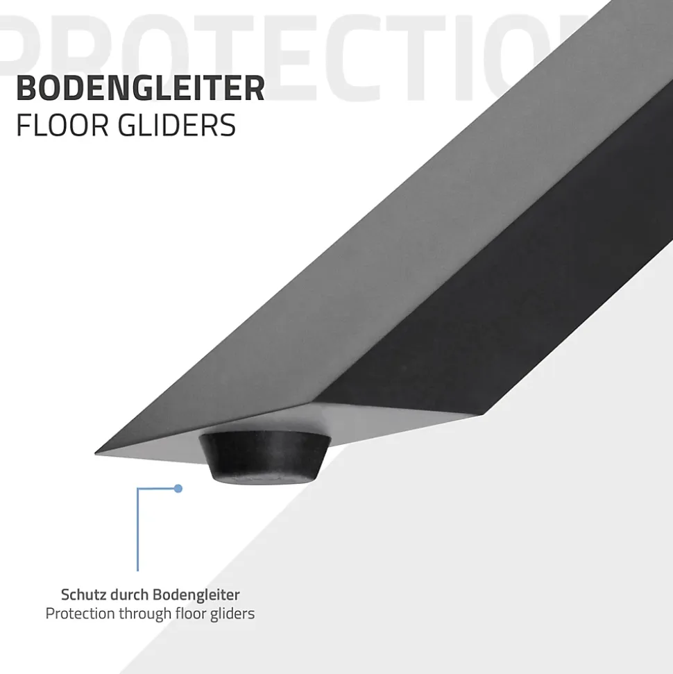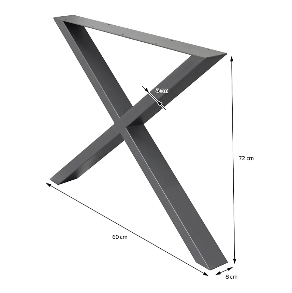 Livraison: 2 x cadre de table en X 4 x protecteurs de sol Données techniques: Matériau: acier à revêtement de poudre Couleur: gris foncé Dimensions (LxH): environ 60 x 72 cm Épaisseur de la plaque de montage: environ 4 mm Epaisseur du tube profilé: environ 1 mm Taille du tube profilé: environ 8 x 2 cm Epaisseur: environ 0.51 mm Points de montage: 2 x 5 trous Poids: environ 5,2 kg Caractéristiques: Surface en acier – avec revêtement en poudre spécial – satiné gris mat Les cadres sont soudés en forme de X Au sommet se trouve une tôle avec 10 points de connexion à vis pour monter tous types de sièges en bois Sur le fond sont 2 capuchons en plastique pour protéger le sol Description du produit: Nos pieds de table vintage peuvent également être utilisés dans des intérieurs modernes. Ceci accentue l’aspect industriel populaire et l’apparence simple ouvre de nombreux domaines d’application. Les chemins de table robustes et robustes se révèlent tout aussi bien à l’intérieur qu’à l’extérieur. Que ce soit par une journée chaude et ensoleillée ou par temps orageux, votre table de jardin avec pieds en acier fera son travail. Les pieds de table de ECD Germany vous accompagneront également dans vos projets de bricolage: cela vous permettra de donner rapidement et facilement une nouvelle vie à vos vieux meubles et de les transformer en meubles de designers originaux!