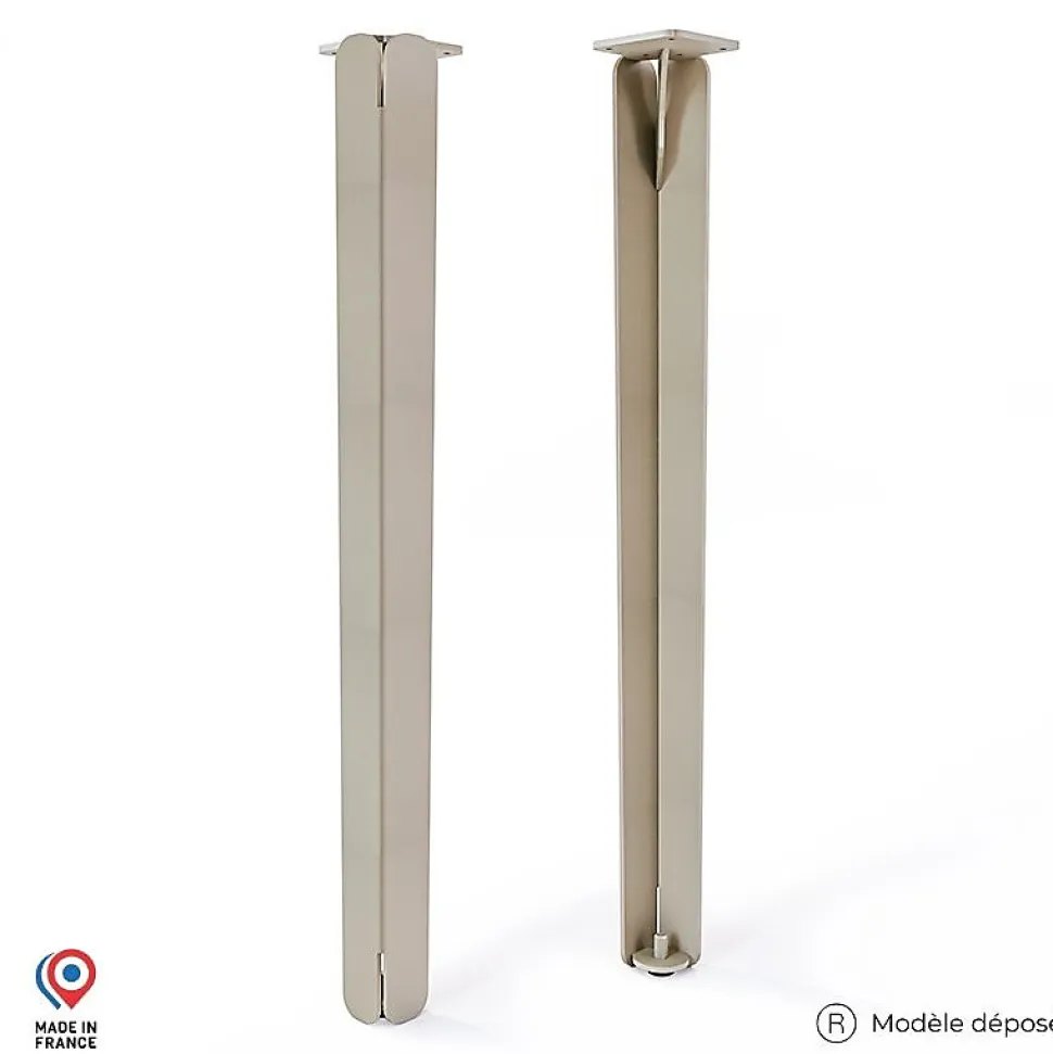 Personnalisez vos meubles grâce au pied de table mange debout en acier JASPE !Le pied de table mange debout en acier Jaspe est proposé par lot de deux pieds de 86 cm de hauteur. Ce type de pied en acier époxy est votre allié idéal pour composer un meuble sur mesure selon vos besoins et selon vos envies. Un vérin à la base du pied permet de bien stabiliser votre table sur le sol et permet de gagner 20 mm de plus par rapport à la hauteur de base des pieds. Grâce au pied de table mange debout Jaspe vous pouvez en effet créer une table à manger, une console, un plan de travail ou encore un bureau.Le pied de table mange debout en acier JASPE se décline en différents coloris. Si nous avons choisi ces teintes, c’est parce qu’elles sont intemporelles et qu’elles pourront facilement s’associer avec votre décoration et avec le plateau que vous aurez choisi. Par ailleurs, ces couleurs sont obtenues avec une peinture sans solvant thermodurcissable : il s’agit d’un type de peinture très résistant et qui permet d’obtenir des finitions impeccables. Vous retrouverez ces couleurs dans l’ensemble du catalogue Déco-Gem.Idée Déco-Gem :Le pied Jaspe est disponible en plusieurs hauteurs, découvrez le pied Jaspe en 39 cm et le pied Jaspe en 71 cm. le pied de table mange debout Jaspe peut être vissé et dévissé et ainsi évoluer avec les différents changements de votre décoration. Comment bien choisir son plateau ?Epaisseur recommandée du plateau : 2,5 cm à 4 cm.Dimensions maximales du plateau pour 4 pieds : 180 cm x 100 cm.Si votre plateau est supérieur à 180 cm, rajoutez un pied tous les 80 cm.Poids max. pour une table suivant recommandations ci-dessus (charge statique) : 100 kg pour table à manger, plan de travail, bureau ou console.Ne pas utiliser de verre ou de matériau cassant.