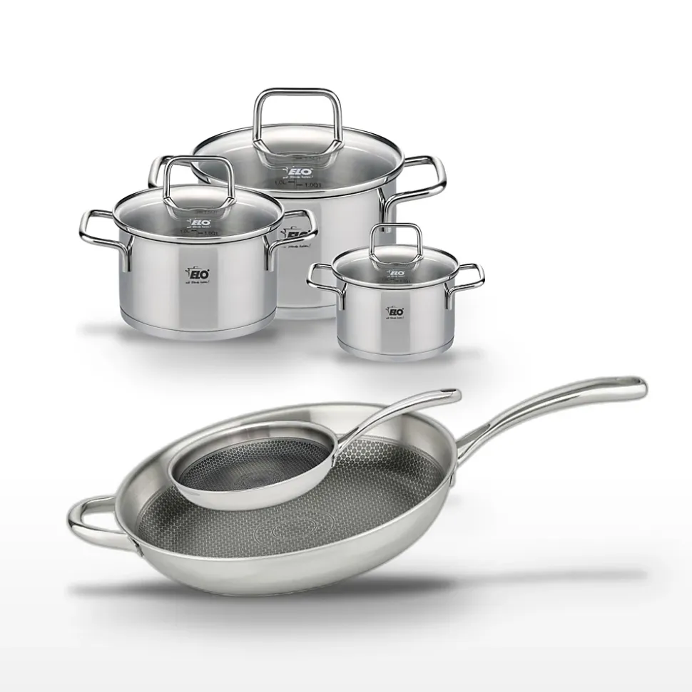 - DESCRIPTION : Ensemble Elo Relief Evolution avec 2 poêles en inox antiadhésif et 3 faitouts pour une cuisson optimale.