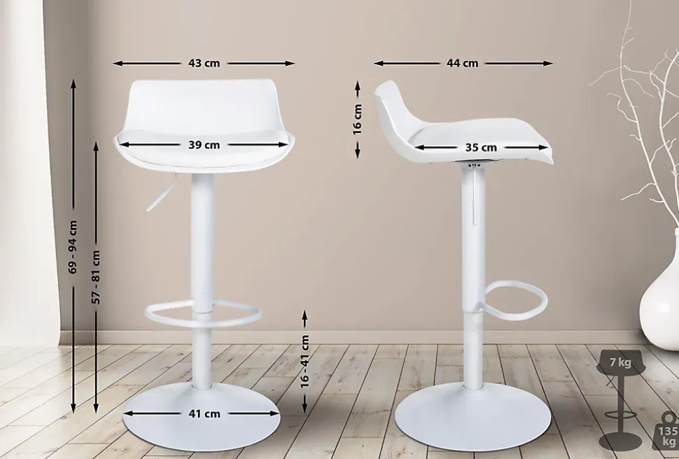 Lot de 2 tabourets de bar Aveiro similicuir, chaises réglables, pied trompette, structure métal, protections sol Blanc
