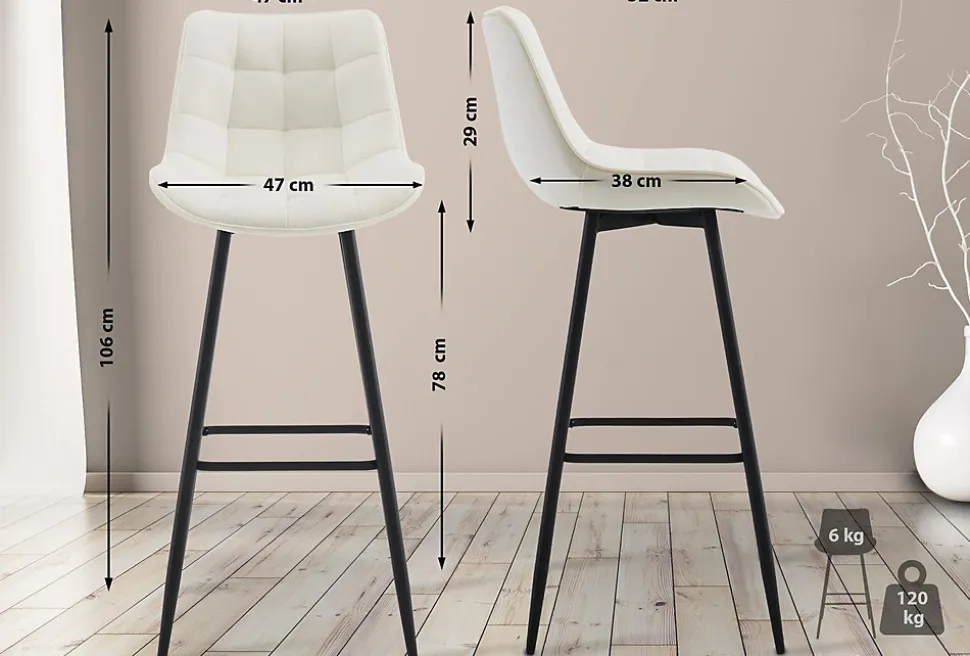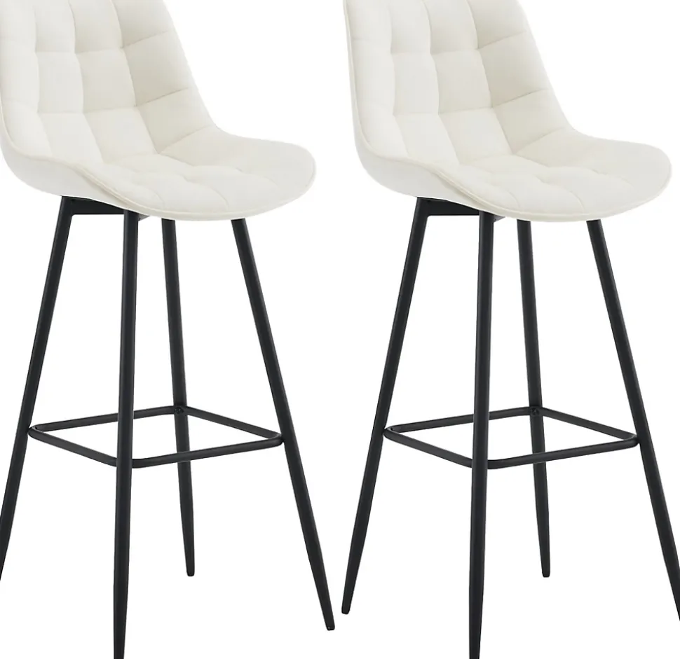Lot de 2 tabourets de bar Dartford, Chaise de bar rembourrée, Structure métallique Crème/Velours