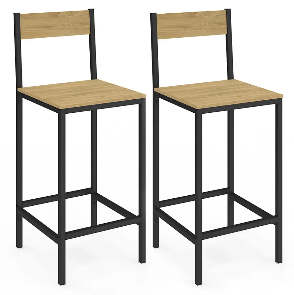 Optez pour les tabourets de bar DETROIT pour sublimer votre intérieur avec leur design industriel moderne.Alliant bois clair et métal noir, ces chaises de cuisine s’intègreront parfaitement à votre espace pour lui donner une ambiance chaleureuse !Pratiques, les tabourets sont dotés de repose-pieds en métal et d’un dossier de 30 cm de hauteur pour profiter confortablement des moments de convivialité autour de votre table haute ou de votre îlot central.La structure en métal et l’assise en MDF de ses sièges de bar astucieux assurent à la fois une grande stabilité et de la robustesse ! Fonctionnels grâce à leurs dimensions compactes, ces assises s’adaptent facilement à tous les espaces tout en apportant une note de déco tendance.N’attendez-plus et osez le look factory des tabourets DETROIT au coloris bois naturel ! Dimensions des tabourets de bar DETROIT avec dossierDimensions : Longueur 41 cm x largeur 39 cm x Hauteur 95 cmHauteur dossier : 30 cmMatériaux : métal, MDF et PVCColoris : Bois et noirÀ monter soi-mêmeVendu en lot de 2Découvrez l’ensemble de notre collection industrielle sur notre boutique en ligne ainsi que l’ensemble de nos tabourets de bar.