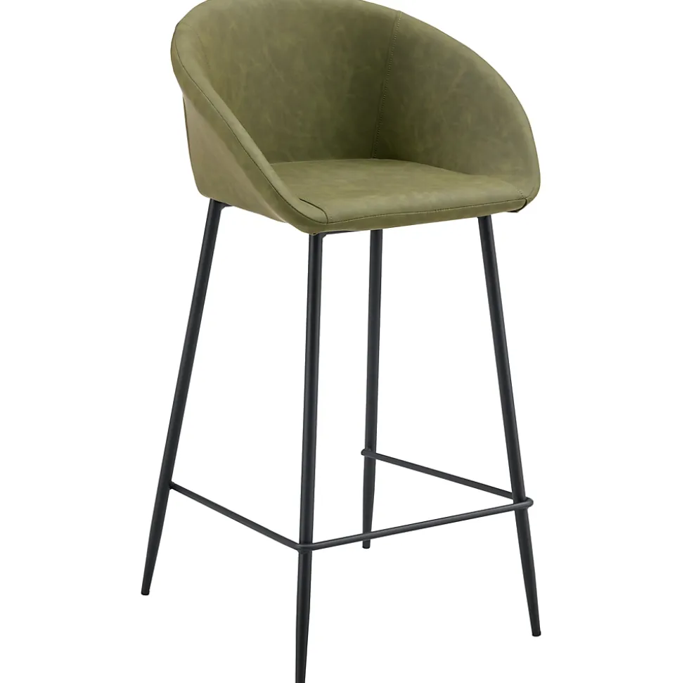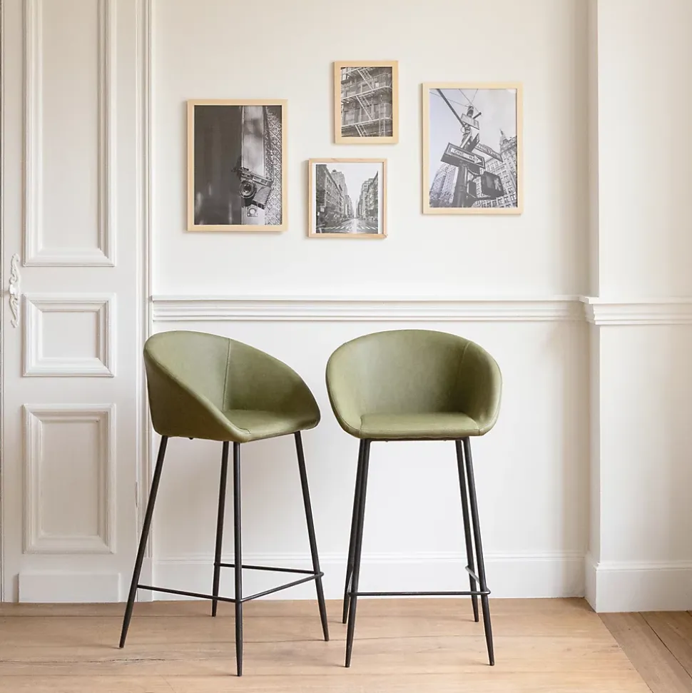 Description : Les tabourets Achille offrent une assise stable grâce à leurs pieds en fer. Leur revêtement en simili est à la fois élégant et éclatant. Un repose-pieds est intégré pour plus de confort. Parfaits autour d’un bar, d’une table haute ou d’un îlot central, ces tabourets s’harmonisent avec divers styles de décoration ! Détails : Dimensions : – Tabouret : P 59 × l 52 × H 91cm- Assise : P 34 x l 31 x H 67cm- Dossier : Ép 3,5 X H 26cm- Pied : Ø 1,9cm Matières : – Revêtement : polyuréthane- Rembourrage : mousse 27kg/m³- Pieds : fer Couleurs : – Revêtement : vert- Pieds : noir Informations complémentaires : – Utilisation : intérieur- Nombre de places : 2- Poids maximum supporté : 120kg- Poids net à l’unité : 6,5kg- Repose-pieds : oui- À monter (notice incluse) – Garantie : 2 ans Livraison : Contenu colis : 2 tabourets de barLivraison effectuée en pas de porte, en bas d’immeuble – Livraison en 1 colisColis 1 : L 71 × l 45 × H 55cm – poids brut : 15kg / poids net : 13kg