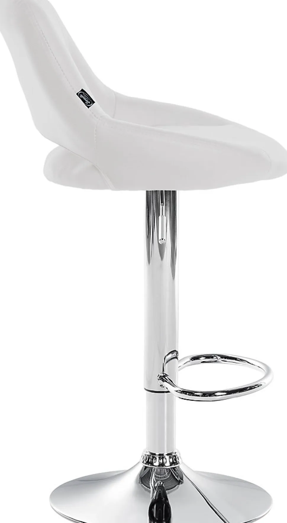 Lot de 2 tabourets de bar Milet similicuir, Chaise de bar pivotante avec repose-pieds et dossier Métalchromé/Blanc