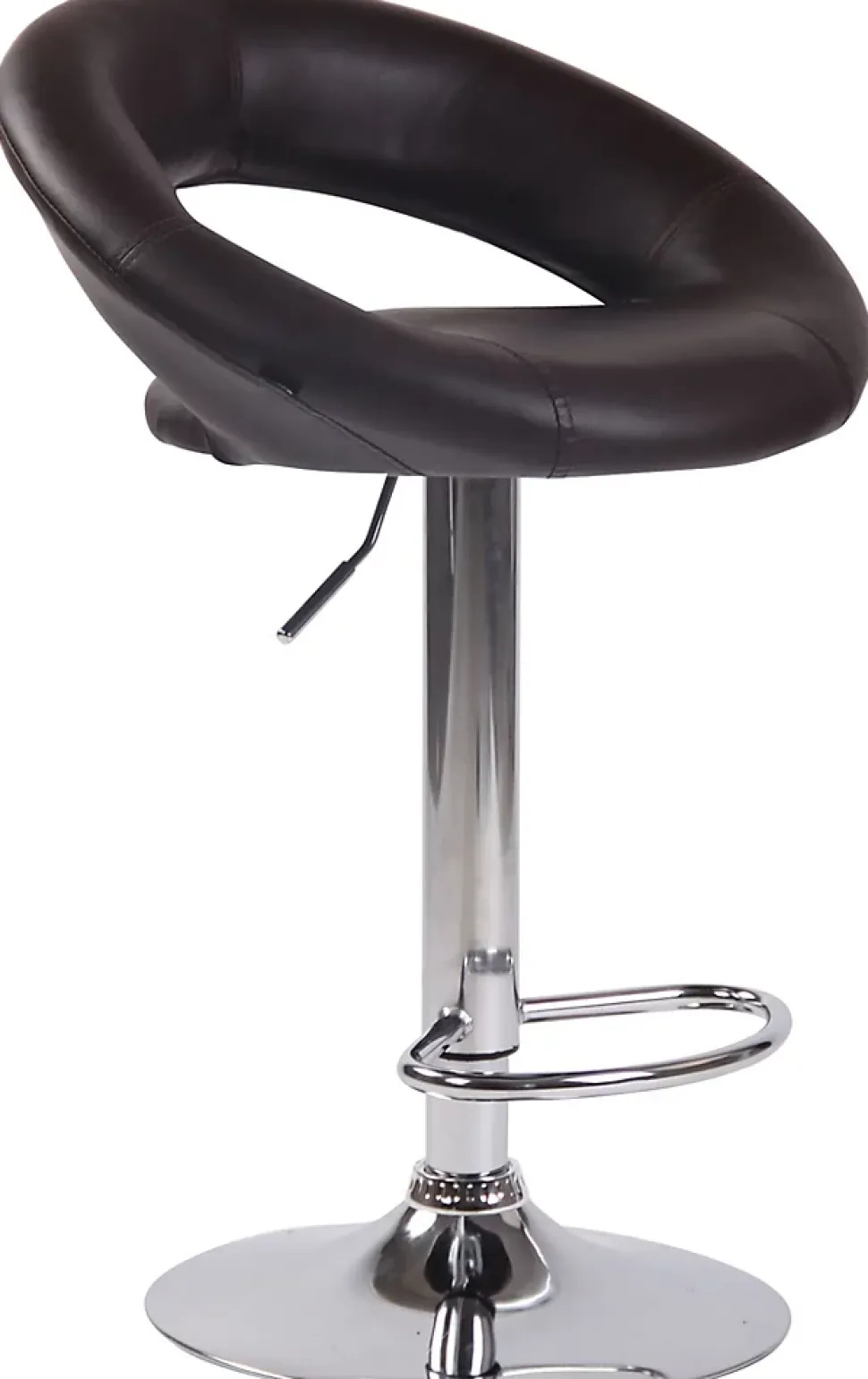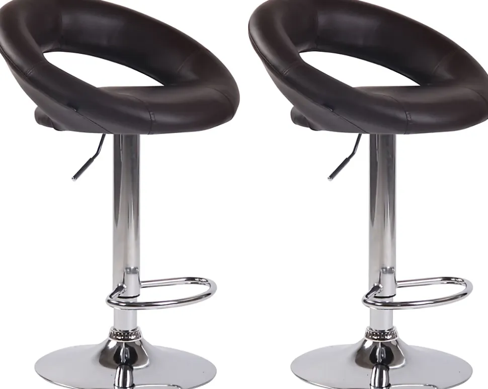 Lot de 2 Tabourets de Bar Olinda en similicuir Cet ensemble de 2 tabourets de bar est à la fois stylé et confortable. Grâce à sa surface d’assise et à son dossier généreusement rembourrés, ce lot de 2 chaises hautes de bar offre une posture confortable, même après de longues périodes d’utilisation. Le siège est confortablement rembourré et revêtu d’un similicuir de haute qualité aussi résistant que facile à entretenir. Ce modèle est réglable en hauteur et pivotant à 360°. Autant d’atouts qui permettent un confort optimal et une flexibilité de mouvement absolue. Ces tabourets de bar reposent sur un piétement en métal aspect chromé, noir mat ou blanc mat ( au choix). Le piètement, doté d’un repose-pieds pratique, est particulièrement résistant et stable. Composition du matériau: 100% PolyuréthaneDimensions (environ)Hauteur : 80 – 101 cmLargeur : 53 cmProfondeur : 47 cmHauteur assise : 60 – 81 cmSurface assise (LxP) : 45 x 39 cmHauteur dossier : 22 cmHauteur du repose-pieds: 21 cmCapacité de charge max.: 120 KgPoids : 6 kgAssiseRevêtement : SimilicuirAssise, dossier et accoudoir rembourrésPiètementMatériel : Métal chromé, noir mat et blanc matStabilité et mobilitéParticularitésDesign moderne et confort optimalRevêtement solide et durableConseils d’entretienTâches légères à nettoyer avec un chiffon en coton humideNe pas utiliser des détergents de ménage