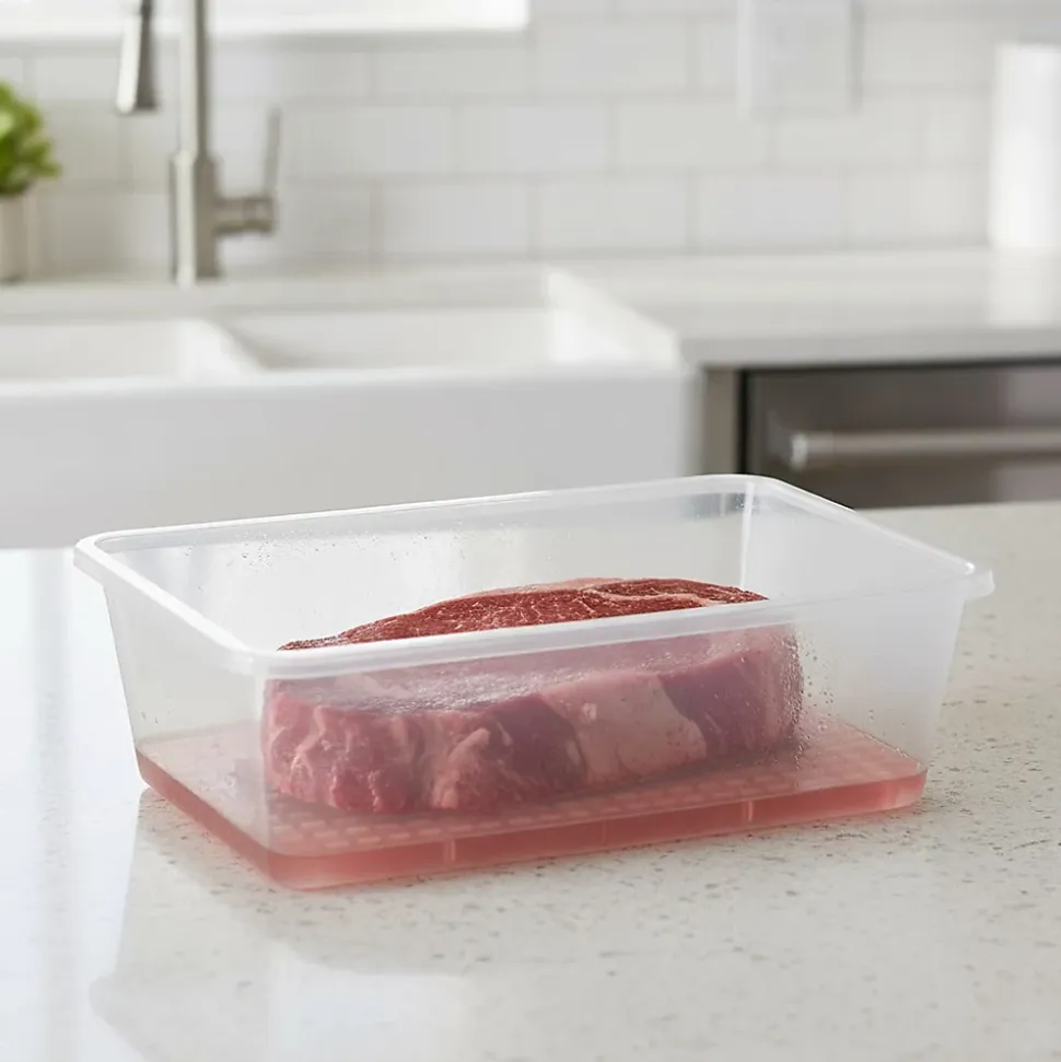Lot de 3 bacs décongélation de 6,5 L avec grille (couvercle rose) – Sans BPA. Pour restauration, cuisines, restaurants