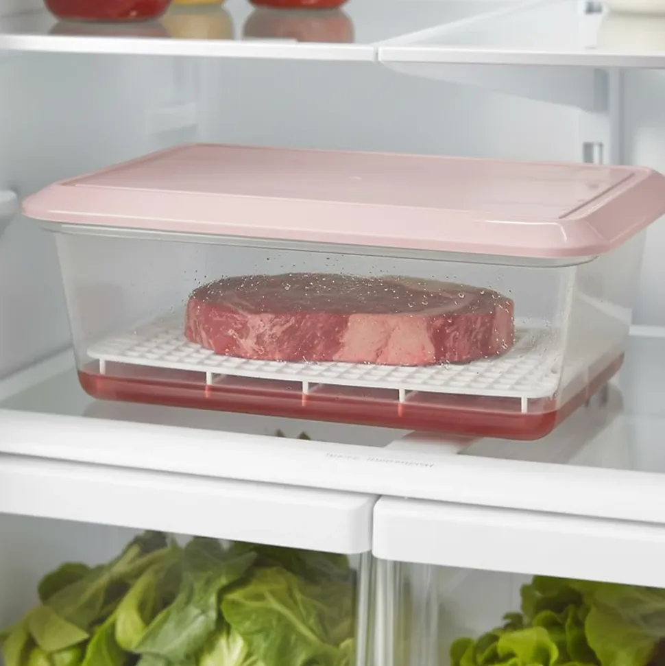 Lot de 3 bacs décongélation de 6,5 L avec grille (couvercle rose) - Sans BPA. Pour restauration, cuisines, restaurants