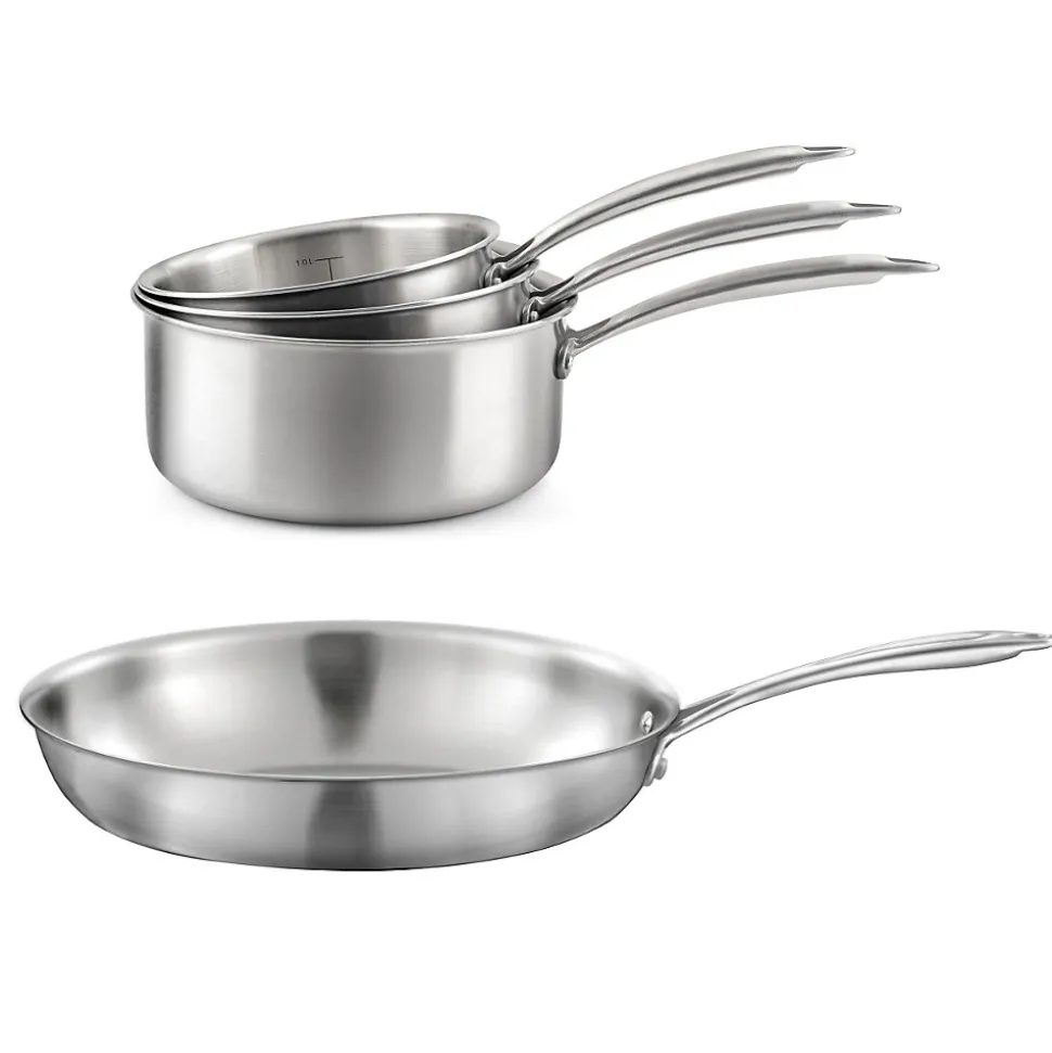 - Lot de 3 casseroles inox 16/18/2 0cm et 1 poêle inox 32 cm de la collection Gourmet par Cuisinox.