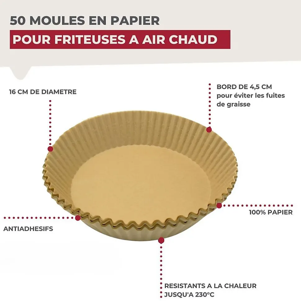 - DESCRIPTION : Ces 300 moules en papier air fryer Fackelmann assurent une cuisson saine et sans huile, pour des aussi plats variés que des légumes, des viandes et des desserts et simplifient la préparation des repas