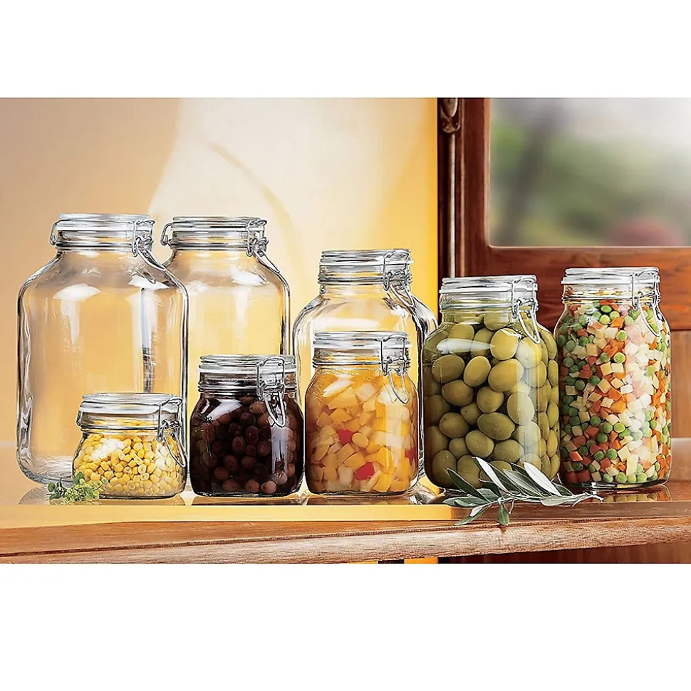 Bocal avec une capacité 4 L pour stocker les aliments secs, fruits, légumes et conserves au vinaigre, etc. Ce pot de conservation a un couvercle avec une charnière. L’anneau en caoutchouc garantit que le couvercle ferme le bocal de manière étanche à l’air et aux fuites. Idéal pour garder et conserver hermétiquement tous les arômes et les odeurs des aliments fraîchement préparés.Dimensions : Diamètre 16 x Hauteur 27.9 cmMatière : verreCouleur : transparentPoids : 7.2 kgCapacité : 4 L