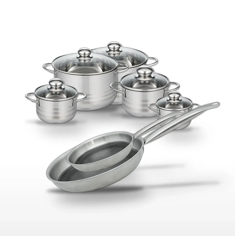 - DESCRIPTION: Cet ensemble complet comprend 4 faitouts et 2 poêles de la collection Elo Relief Solution, offrant une cuisson homogène et économique grâce à leur conception en acier inoxydable de haute qualité.