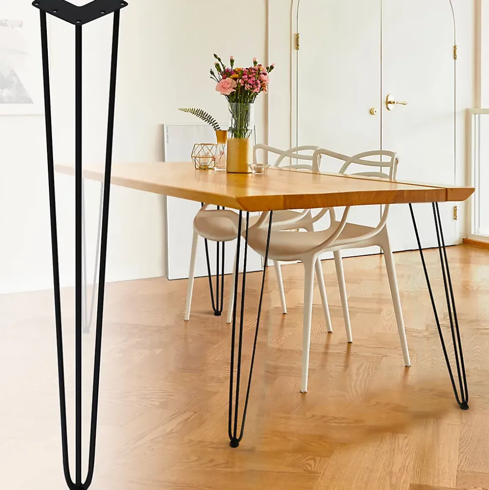 Laissez libre cours à votre créativité et fabriquez vous-même vos propres meubles tendances !Grâce à ce lot de 4 pieds épingle en acier laminé ultra robuste Hauteur 71 cm, customisez et réinventez vos vieux meubles. Ce set de 4 pieds apportera une nouvelle vie à votre console d’appoint, votre commode, avec un design industriel moderne ultra-tendance.Faites de votre meuble un objet unique et personnalisé ! C’est désormais facile de fabriquer votre propre table de salle à manger, vos tabourets de bar ou encore votre bureau. Leur design 3 tiges en forme de L leur confère stabilité et robustesse. Chaque pied supporte jusqu’à 50 kg environ.Montage facile : grâce à la plaque de fixation, les pieds se fixent simplement au plateau du meuble (non fourni) : 4 vis fournies par pied soit 16 vis au total.Dimensions du lot de 4 pieds épingle 71 cmHauteur d’un pied : 70,5 cm (avec patin 71 cm)Largeur d’un pied : 11 cmProfondeur d’un pied : 11 cmDiamètre : 1 cmDonnez du style à votre intérieur !4 Patins anti-dérapants fournisRéalisez tous vos projets sur mesure avec notre set de 4 pieds 3 branches en acier disponible sur notre boutique en ligne :- Lot de 4 pieds épingle 40,5 cm
