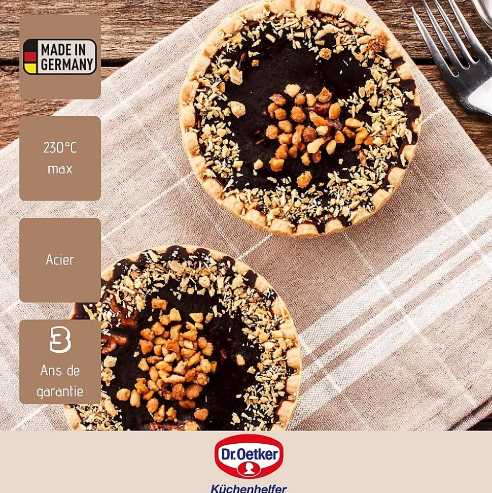 - DESCRIPTION : Dr.Oetker vous propose ce lot de 6 moules à tartelettes pour préparer des bonnes tartelettes sucrées ou salées.