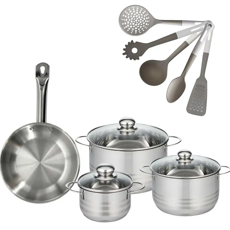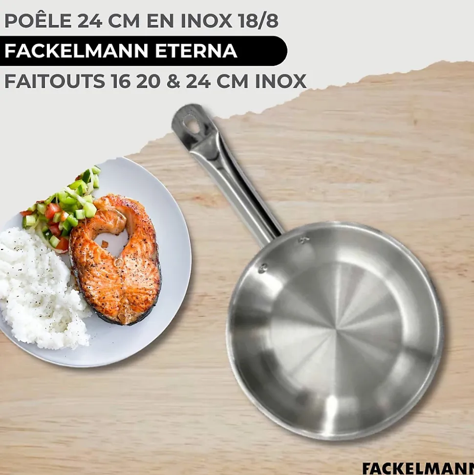- DESCRIPTION: L’ensemble Fackelmann Etherna inclut une poêle en inox et trois faitouts robustes, accompagnés de cinq ustensiles ergonomiques pour une cuisine efficiente