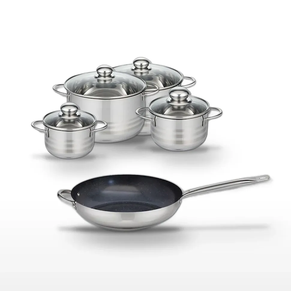 - DESCRIPTION: Profitez d’une cuisine saine avec le lot Elo incluant une poêle 32cm et quatre faitouts en inox, tous sans PFAS.