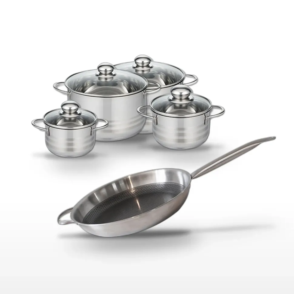 DESCRIPTION : Profitez d’une cuisson homogène avec la poêle 32 cm et les faitouts Elo Relief Solution, tous compatibles tous feux.PETIT + : Revêtement antiadhésif ELODUR Select sans PFAS pour une cuisine saine et un nettoyage simplifié.COMPOSITION : Acier inoxydable 18/10, aluminium, revêtement antiadhésif minéral sans PFAS.DIMENSIONS : Poêle 32 cm; Faitouts 14 cm, 16 cm, 20 cm, 24 cm pour des repas variés.UTILISATION : Idéal pour tous types de feux, y compris induction. Passe au four jusqu’à 240°C.ENTRETIEN : Nettoyage facile avec une éponge douce. Compatible lave-vaisselle.Le lot Elo Relief Solution est conçu pour répondre aux besoins des professionnels de la cuisine et des amateurs exigeants. La poêle de 32 cm, avec son revêtement antiadhésif sans PFAS, assure une cuisson parfaite et homogène, tout en facilitant le nettoyage. Les faitouts de 14 cm, 16 cm, 20 cm et 24 cm, fabriqués en acier inoxydable, garantissent une distribution optimale de la chaleur grâce à leur fond capsulé. Ce lot est compatible avec tous les types de feux, y compris induction, et peut être utilisé au four jusqu’à 240°C. Chaque pièce est pensée pour offrir une prise en main confortable et une esthétique moderne, faisant de cet ensemble un choix idéal pour équiper une cuisine professionnelle ou pour les passionnés de cuisine raffinée. Optez pour la qualité et la durabilité avec le lot Elo Relief Solution.