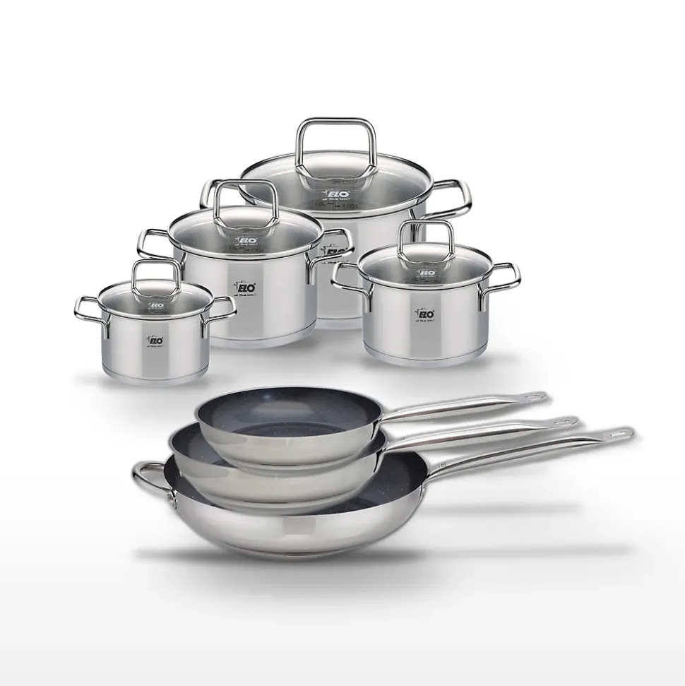 - DESCRIPTION: Cet ensemble Elo comprend trois poêles en céramique sans PFAS et quatre faitouts en inox, parfaits pour une cuisine variée et saine.
