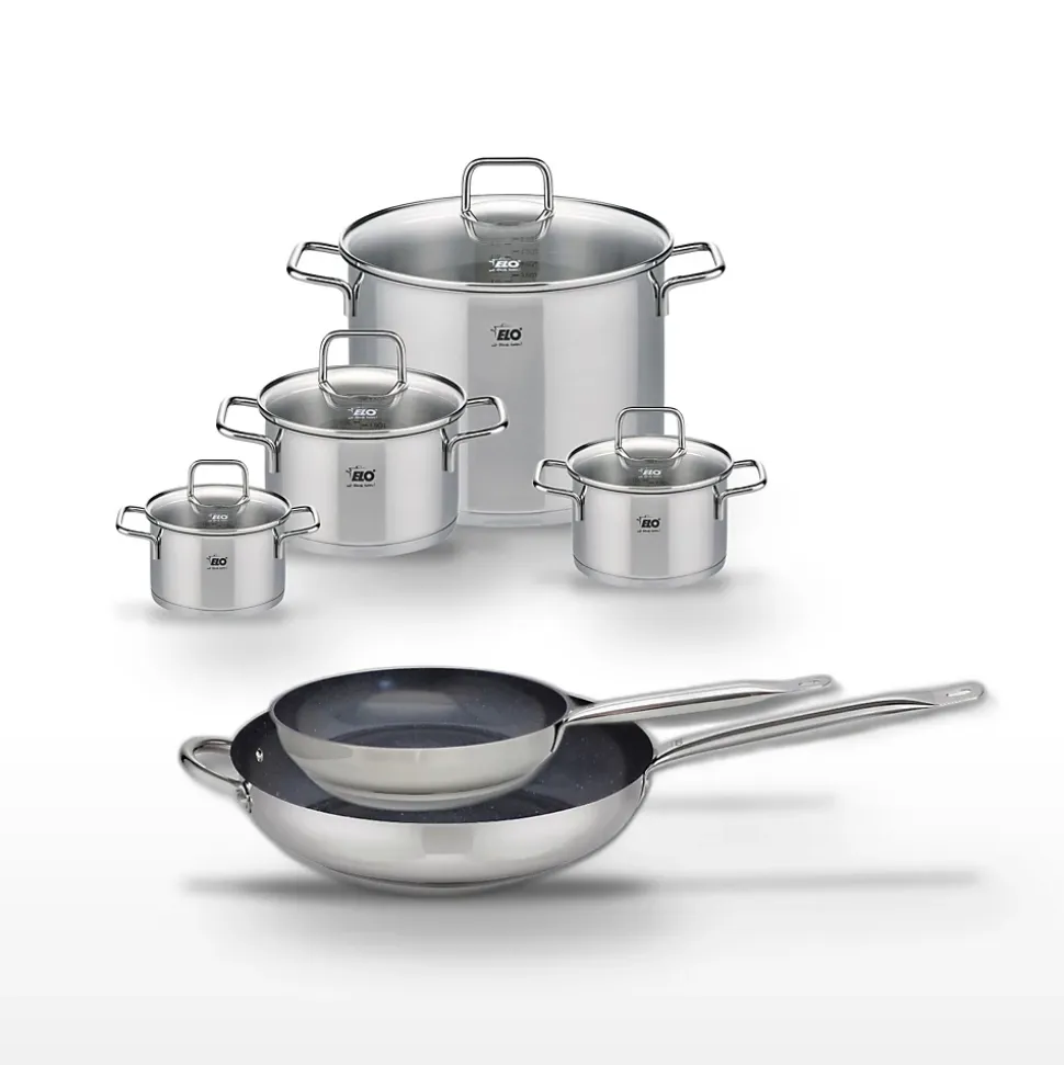 - DESCRIPTION: L’ensemble Elo Profi Therm Platinum comprend deux poêles céramiques sans PFAS et quatre faitouts en inox, assurant une cuisson saine et efficace.