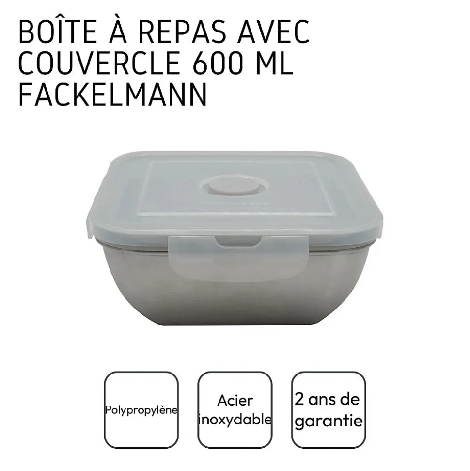 - DESCRIPTION : Fackelmann vous propose cette boite de conservation ou boite à repas pour le midi en inox qui passe au micro-ondes pour emmener vos repas au travail ou à l’école
