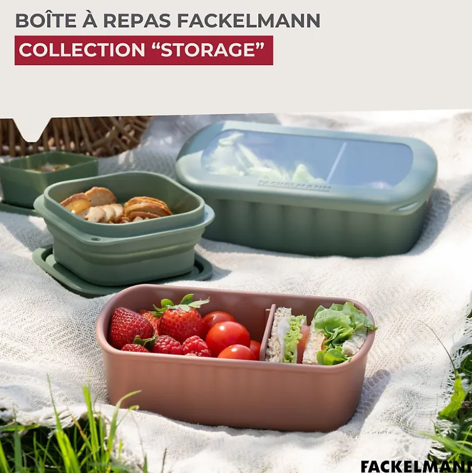 - DESCRIPTION: Boîte à lunch rouge terracotta de 1 litre Fackelmann Storage, idéale pour organiser vos collations et repas avec style et praticité