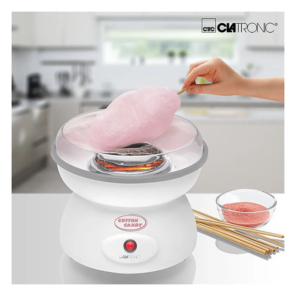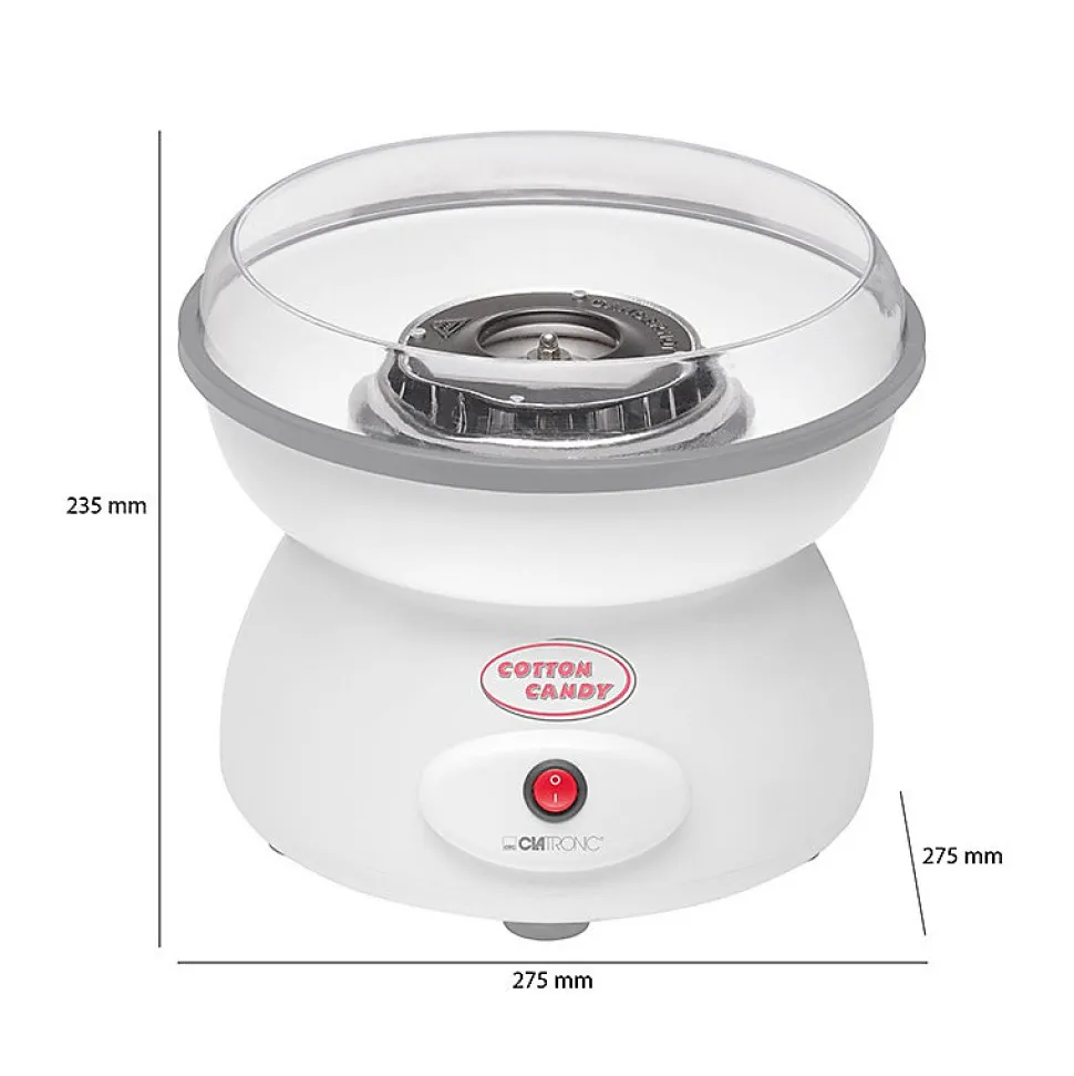 Grand bol à barbe à papa : Ø 27 cm environPare-éclaboussures transparent (amovible)Le plat et la protection contre les éclaboussures passent au lave-vaisselle.Élément chauffant à quartzSupport sûr grâce aux pieds à ventouseCuillère à mesurer et 10 bâtonnets en bois inclus220-240 V, 50/60 Hz, 500 W