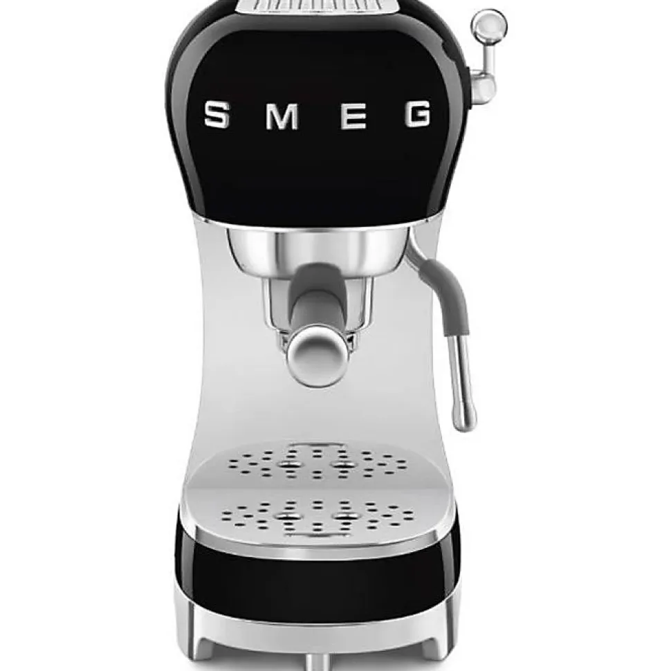 SMEG Espresso machine (ECF02BLEU) black Schwarz – design rétro années 50 avec technologie moderne thermoblock, puissance 1350W, pression 15 bars, réservoir 1,1 L, double porte-filtre, buse vapeur orientable, arrêt automatique, pieds antidérapants.